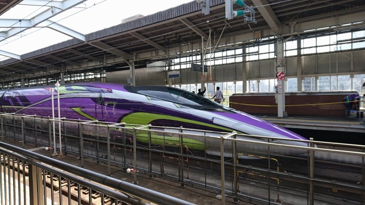 こんばんは 豊橋教室のブログへようこそ! 今日は、朝からどんよりの豊橋でした。 今朝も、まだ桜吹雪の中を出勤してきました。 この時期にも、まだソメイヨシノが咲いているのは珍しい。 朝からちょっぴりうれしい出勤です。 ~~~~~~ 昨日は、大阪へ出張しておりました。 いつもは午前中からのなので、朝早くの新幹線で大阪入りですが、 昨日は、午後からなのでいつもよりはのんびりと大阪に入りました。 大阪に着いて、新幹線からフラフラと下りてくると、 私の歩いているホームの向かい側に 輝かしい一台の新幹線が 神々しい姿で、私の目の中にスライドインしてきました。 \(◎o◎)/! えっ! \(◎o◎)/! えっ!!!! \(◎o◎)/! え~~~~~~~~~~~~~~~~~~~~~~っ!!!!!!! まさか、この時間なの~~~~~~!!! \(◎o◎)/! それから慌てて、スマホを取出し写す写す! あっ!いけない。 iPadも出さなきゃ…!!! 次はipadを取出し、またまた写す写す。 何をって。 いつかは見てみたいと思っていた、 素敵な紫色の車体 「エヴァンゲリオン」仕様の輝かしい新幹線が 私の目の前に突然登場したのでした。 ホームは私みたいな人ばかりで、写真を撮るわ・撮るわ。 本当に、老いも若きもで一生懸命みんな一心不乱に撮影していました。 私も同じく仲間になって、ホームで何度も写真を撮ってしまいました。 次回はぜひ、あの中も見学してみたいな~。と一人思ったのでした。 それにしても、突然でしたがとっても嬉しかったです。 (*^_^*)