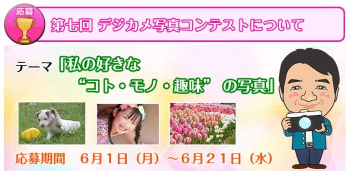2016年06月05日 12:26 コメント 5 件 デジカメ写真コンテスト開催中です。こんにちは 豊橋教室のブログへようこそ! 6月に入って、もう5日が過ぎました。 お伝えするのが遅くなりましたが、 只今「第7回デジカメ写真コンテスト」を開催中です。 デジカメ写真コンテストも、すでに7回目になるんですね。 今回の、テーマは、 「私の好きな コト・モノ・趣味」となります。 とにかく、今すぐに自分が好きだな~。って思うものを撮影しましょう! もちろん、すでに撮影してある写真でもまったくかまいません。 「これぞ!!」っと思った写真を、今すぐ応募のボタンを押して、 応募したい写真をアップロードしてくださいね。 期限は、6月21日(火)までです。 教室で声をかけ忘れてしまうので、みなさん、自主応募よろしくお願いいたします。 <m(__)m> ~~~~~ 昨日梅雨した東海地方。 今日は、予定通りの雨模様。 梅雨時らしく、しとしとと降っています。 今年の夏は、「夏らしい夏」と言っていましたが、 どうなることでしょう? 明日からは、P-1グランプリ終盤戦に突入です。 残り10日間です。 引き続き、皆さんよろしくお願いいたします。 <m(__)m>