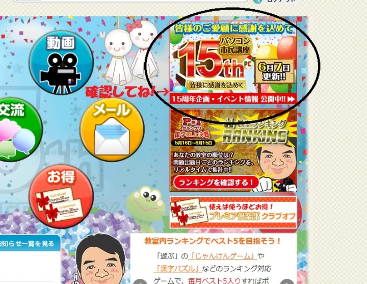 2016年06月07日 20:55 コメント 7 件 バーナー更新!見てね!こんばんは 豊橋教室のブログへようこそ! 梅雨時ですが、なんのその! 教室ではいつもお天気マークです。 じめじめしている方は、ぜひ教室でお勉強してみてくださいね。 そして、デジカメコンテスト。 私たちの誘導がなかなかできないでいるのですが、 ぜひ皆さん、進んで応募お願いいたします。<m(__)m> そして、今日更新になったトップページのバナー! 確認してみてくださいね。 新しいお知らせが満載です。 それにちなんで、7月7日(木)13:20~ プレミアサイトのつないこなしレッスンを開催いたします。 今年も、宝くじにかかわるミッションが開催されます。 是非使いこなしレッスンに参加されて、ミッションの達成をしましょうね。 詳しい事は、トップページのバナーを確認してくださいね。 (^-^)