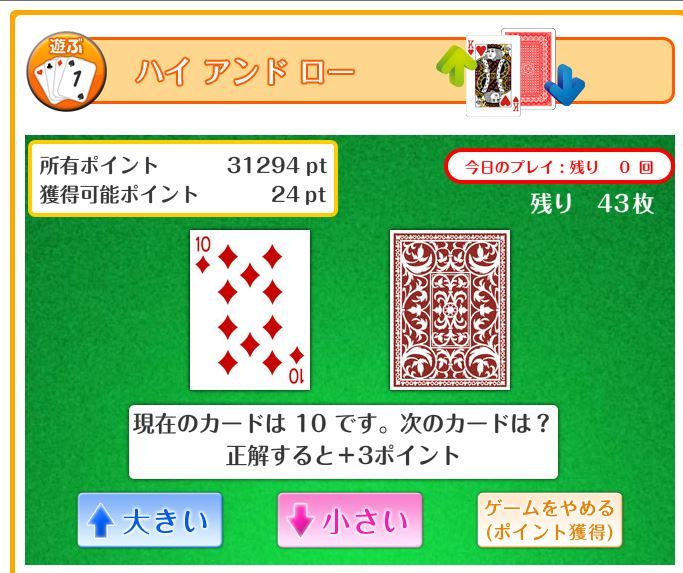 ハイアンドローゲーム、 5日と6日にストレート負けを喫しました。 7日と8日で、なんとかプラスマイナス0に戻せましたが、 昨日は、ダブルチャンスやっと1勝・・ またもマイナス。 ようやく、今日、ダブルチャンス4勝でポイントアップに漕ぎ着けました。。 ハイアンドローゲームがポイントアップ出来るのは、 訳があります。 ハイアンドローの秘密とは、 その秘密とは、 その秘密とは、 その秘密とは、 ハイアンドローのルール自体が、受講生側に有利になっているからです(*^^)v