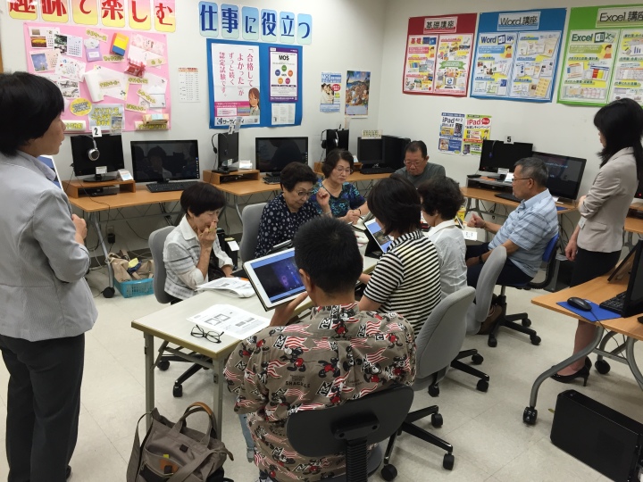 こんばんは 豊橋教室のブログへようこそ! 今日は、思ったよりも涼しい夜ですね。 昼間は、夏らしい日差しでした。 そして、今日はこの2・3日ニュースの話題にもなっていた 「ポケモンGO」が、日本でも配信されました。 これって、ARを利用しているんですよ。 AR 夏の特レスで登場ですね。 思わず私も、ダウンロードしてみましたが、イマイチよくわからない・・・。 まっゆっくり楽しんでみます。 ~~~~~ 今日は、ipadイベントを開催しました。 昨年、皆さんも一緒に試していただいた、 filmstoryを利用して、静止画を動画に変えて 楽しみました。 あっという間の2時間。 やっぱり作品を作成するイベントは、ひたすら無言になってしまいますね。 そして、今日はラッキー7さんがとっても素敵なアイテムをお持ちになって下さって、 またまた楽しい時間となりました。 何を持って着てくださったかというと、それはラッキー7さんの 昨日のブログを見てくださいね。(^-^) 自分の撮った写真が、動画になって音楽までつけられて、 しかも無料・・・。 私も久々に動かしてみましたが、やっぱりいいですね。 来月は、ARがipadの方たちの出番ですよ。 ぜひ、ご参加くださいね。(^-^)