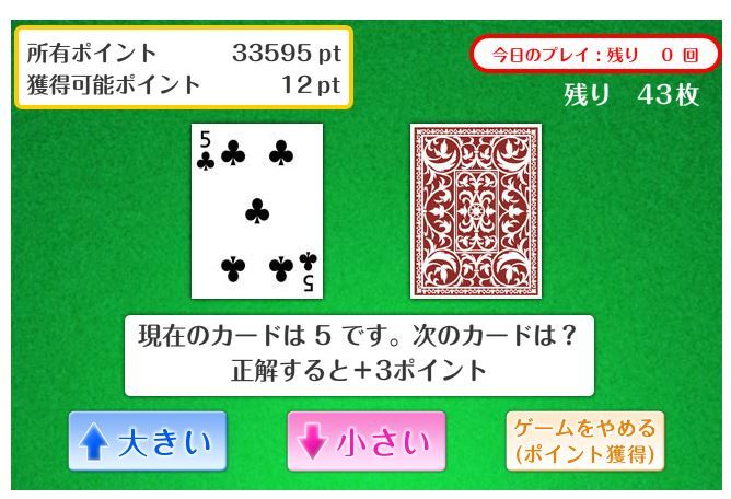 今月のハイアンドローは、好調です(^_-)-☆ ストレート負けも無く、ポイントゲット!! 今日は、ダブルチャンス引分が2回、勝っても引分でも、 そこで、ストップ・・ポイントゲットです。 勝ち続けると余裕が出てくるので、手堅く行けますね~ これが、負が多いと無理な闘いを挑んで、負けるのです。 画像1 500ポイント以上を稼いでます。