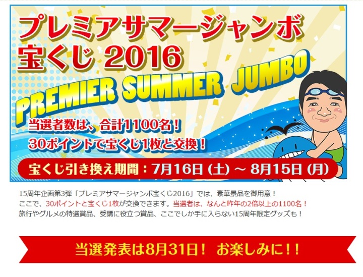 こんばんは。パソコン市民講座 イトーヨーカドー豊橋教室です。 まだまだ暑い日が続きますが、 毎年特別レッスンが終わると、今年も夏が終わるな~と感じます。 さて、来週8月31日はプレミアサマージャンボ宝くじの 当選発表があります。 朝10時頃からの予定となっています。 何が当たるか、誰に当たるか楽しみですね~。 もうしばらくワクワクしながら待ちましょう!
