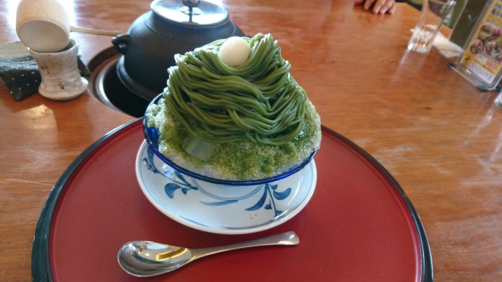 2017年08月14日 18:50 コメント 6 件 カキ氷ドライブこんばんは 豊橋教室のブログへようこそ! ただいま豊橋教室は、夏季休講中です。 明日もう一日お休みをさせていただきます。 よろしくお願いいたします。 今日は、ドライブしながらいつかおとちゃんさんが行かれた、 エスプーマー氷を食べに西尾市まで行ってきました。 途中、お仕事がある人と一緒だったので、 新東名を利用して、ちょっと遠回りをしてのドライブでした。 まずは、長篠設楽原SAでちょっとブレイクしたのですが、 SAエリア内に、長篠の合戦時の、織田信長の本陣跡の山があったので、その上まで登ってみました。 昔の皆さんは、あんな甲冑で武装しているのに、 山の上まで登ったのとは、本当に恐れ入りました。 私は、整備された階段を上がるのも大変だったのに・・・。 新東名は一区間だけ利用したのですが、お盆の最中のせいもあるのか、意外と車は少なめでした。 その後はお目当ての、エスプーマーかき氷を目指してお店まで行ったのですが、 到着したのがおひる近く。 目的のお店の前は長蛇の列・・・。 見るなり行先を変更。 持参したipadでお店をチェックして、松鶴園というお茶やさんに行ってきました。 こちらもたくさんの方がお待ちでしたが、 先ほどとは違って、店内で待てる範囲の込み具合でしたので、 そこで、抹茶のカキ氷を食べてきました。 私の食べた、「稲荷山茶園」カキ氷の上に、 抹茶餡がモンブランのように、ぐるぐるなっているんです。 美味しいかった・・・。 息子の食べたのは、抹茶の下に練乳味の氷がふわふわの逸品で、これまた美味でした。 今回食べられなかった、エスプーマーカキ氷。 またリベンジに行きたいな~~っと思いました。(^-^)