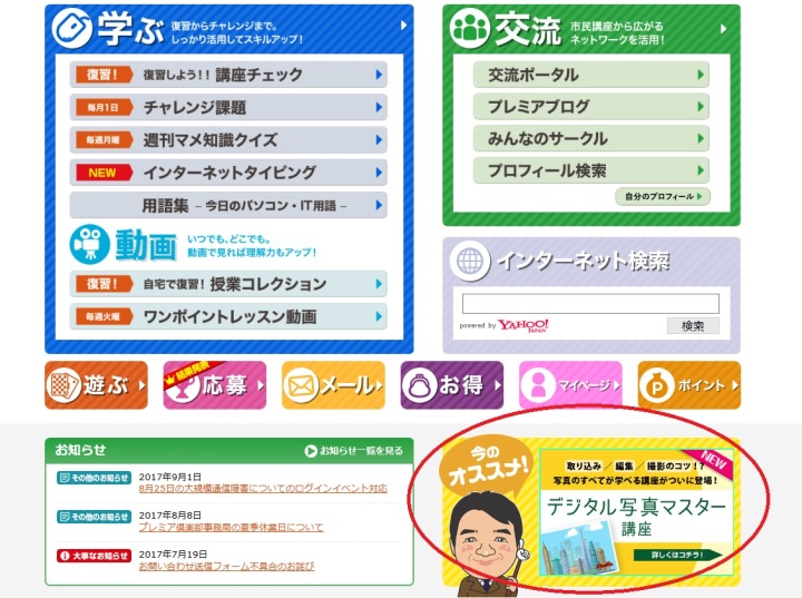こんばんは。パソコン市民講座 バロー豊橋教室です。 昨日は20日だったので、プレミアサイトの 「おすすめアプリ紹介」の更新日でした。 このコーナーは毎月10日、20日、30日に更新されます。 iPad・iPhone用のアプリのご紹介です。 【遊ぶ】のボタンから確認できます。 パソコンからも見ることはできますが、 アプリのインストールは出来ませんので、iPadかiPhoneで ご利用くださいね。