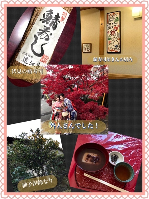 伏見稲荷大社の千本鳥居を潜ってきました。 何故か…異世界に通じるような気がする鳥居を潜って 稲荷山に登り、東福寺の通天橋を渡って 紅葉を満喫して、来ました。 稲荷山の茶店で甘酒で疲れを癒し、 東福寺の日毛氈を引いた縁台でおぜんざいを食べて ほっと一息……東福寺のお土産は京都の銘店のちりめん山椒❣️ お味は、中くらいの〔はんなり〕だそうです。 因みに薄味は〔薄いのん〕濃い味は〔濃いのん〕 と言う商品名になっていました。 伏見稲荷では、昔食べて 忘れられ無い鯖の棒鮨 狐のお面形の稲荷煎餅 真菜に御神籤入りの狛犬ならぬ狛狐? のミニチュアと狐のお面…… 此れも手のひらサイズのミニチュアです。 今日の歩数は13,200歩……登り降りの石段が殆どなので、 歩数以上に歩いた気がしますね〜 東福寺の写真は明日 アップしますね。