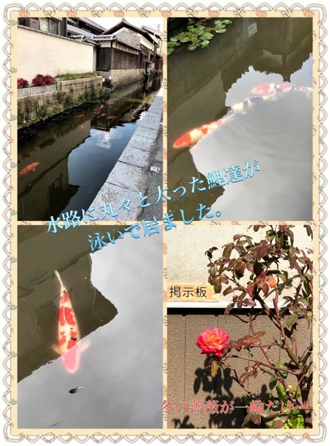 朝は暖かい日差しでしたね。 校区の高齢者の集いに参加して来ました。 来賓の方々の挨拶が終って、中納音楽教室の主催者… 中納由嘉さんのリズミック体操で身体と頭を下げほぐして、 ( 此れが中々難しくてね〜楽しいけどリズムが合わなかったり) 兎に角 笑い声の内に体操を終えて、 次々に懐かしい歌を歌って、喉も渇いてお腹も空いた所で、 お待ちかねのお昼のお弁当です。 中々美味しいお弁当ですが、シニアには少し量が多い❗️ ご飯は殆ど残りました。 和やかに、ランチタイムが終わり熱いお茶を頂いて一息…… 其処で 嬉しいお知らせでした。 バレンタインのチョコレート❣️ 一足早くプレゼントです。 ささやかでも頂くと嬉しいですねヾ(@⌒ー⌒@)ノ 思いがけない事で皆んなニコニコでしたね。(^O^)/ 再開を訳して外に出て見たら風がきつくなつていました。 友達のご主人の車に乗せて貰っていたので、助かりました。 会場の前の水路に大きな鯉が沢山泳いで居て、寄って来るのよ。 美味しい餌を貰っているようでよく太った鯉達でしたね。 2時前に帰り着いたので序でに自転車で図書館に行って来ました。 読む物が無くなっていたので、先日の続きを3冊借りてきました。 ハードカバーなので、文庫本だと6冊以上有りますね。 楽しみに読むつもりです。