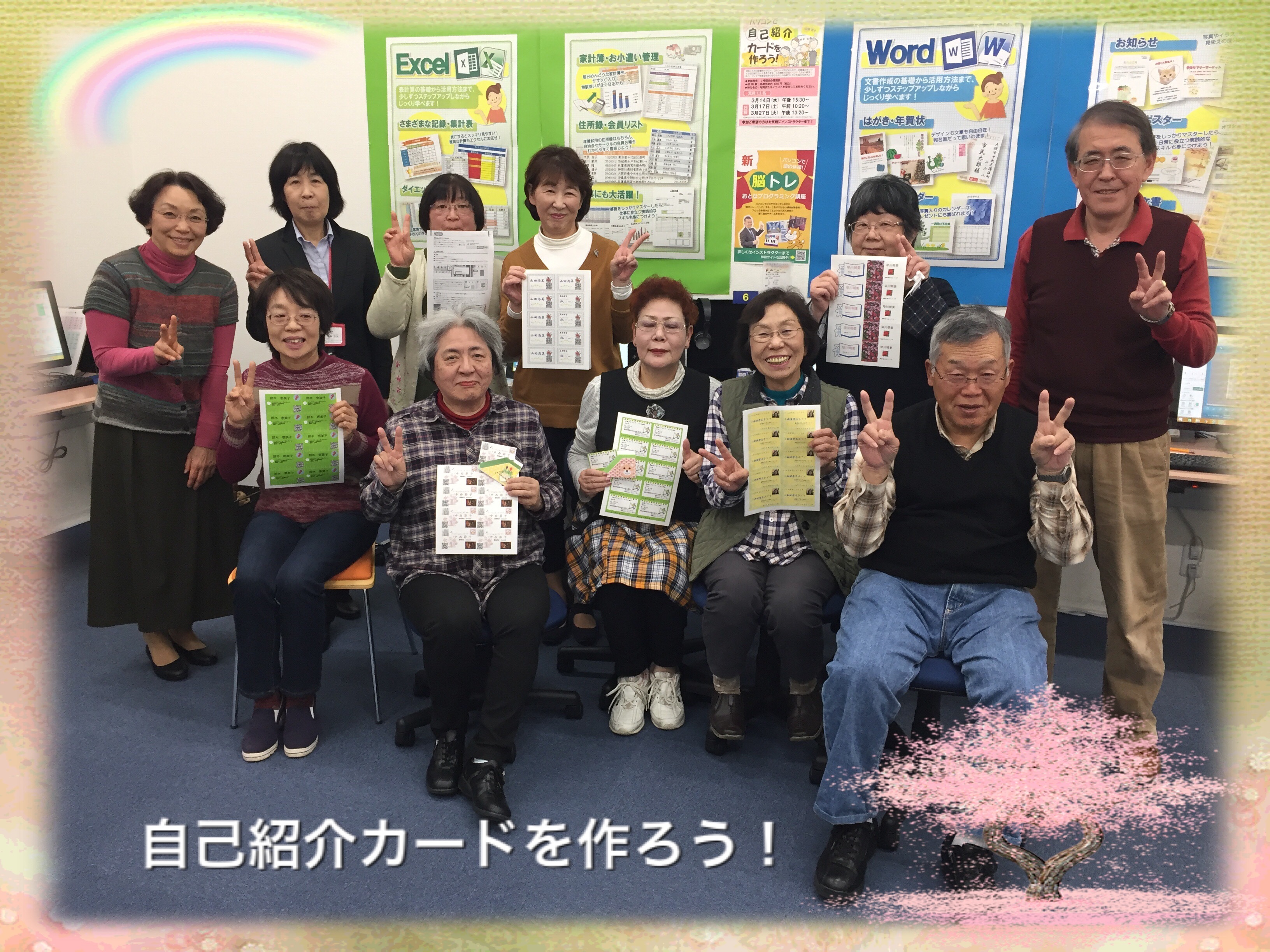 こんにちは 豊橋教室のブログへようこそ! 雨が上がって、少し冷たくなりました。 流石三寒四温ですよね。 来週はいよいよ春分の日もやってきます。 季節の代わりですね。 サクラの花の他よりも少しずつ聞こえてきます。 いつもの年よりも遅いのかと思ったら、意外と普通に開花間近のようです。 桜が咲くと、一気に春爛漫です。 今日は、教室イベント「自己紹介カードをつくろう!」 2回目のイベント開催日でした。 今日は、10めの方にご参加いただき、 皆さんご自身の思い思いの自己紹介カードを作成されました。 いつもイベントでは、皆さんの個性が発揮されるので 私達インストラクターも、自分の凝り固まった思考が緩むイベントでもあります。 今日もみなさん、ご自身のカードを真剣に作成されていました。 始めはなかなか思うようにならないことも、時間がたつと順調にできるようになります。 何でもそうなんですが、習うより慣れろで 実操作をたくさんすると、忘れないようになります。 頭で考えても、手や指はなかなか動きません。 実践あるのみです。 しかも、教室で覚えたことが活用できるのが、教室イベントとなります。 ぜひ、時間を合せて皆さんご参加下さると、それはそれは活用範囲が広がりますよ。 次回の自己紹介カード作成日は、 3月27日(火)13:20~15:20までとなっております。 まだまだご予約受付中です。 もっとパソコンを活用したい方。 ぜひ、教室イベントに参加してみてくださいね。(^-^)