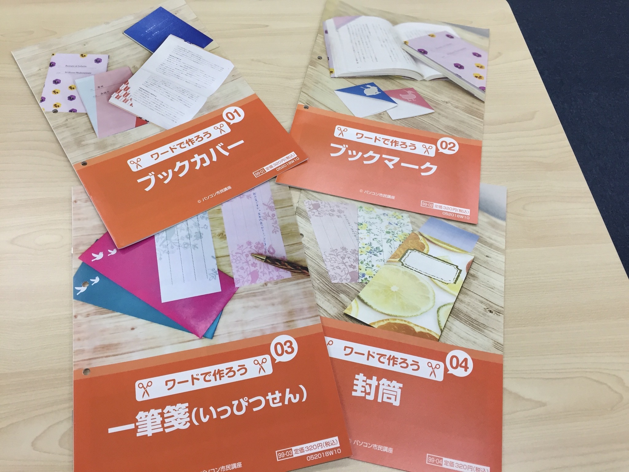 こんばんは 豊橋教室のブログへようこそ! 間もなく新講座が始まります。 新講座は、「ワードで作ろう!」です。 ワードを利用して、ブックカバーやブックマーク。 封筒や、一筆箋、週刊スケジュール表と、 普段使いができるアイテムをご用意しております。 講座のスタートは、6月からになります。 もちろん、お持ちのDM券をご利用いただけます。 ぜひ、新講座をお楽しみに!