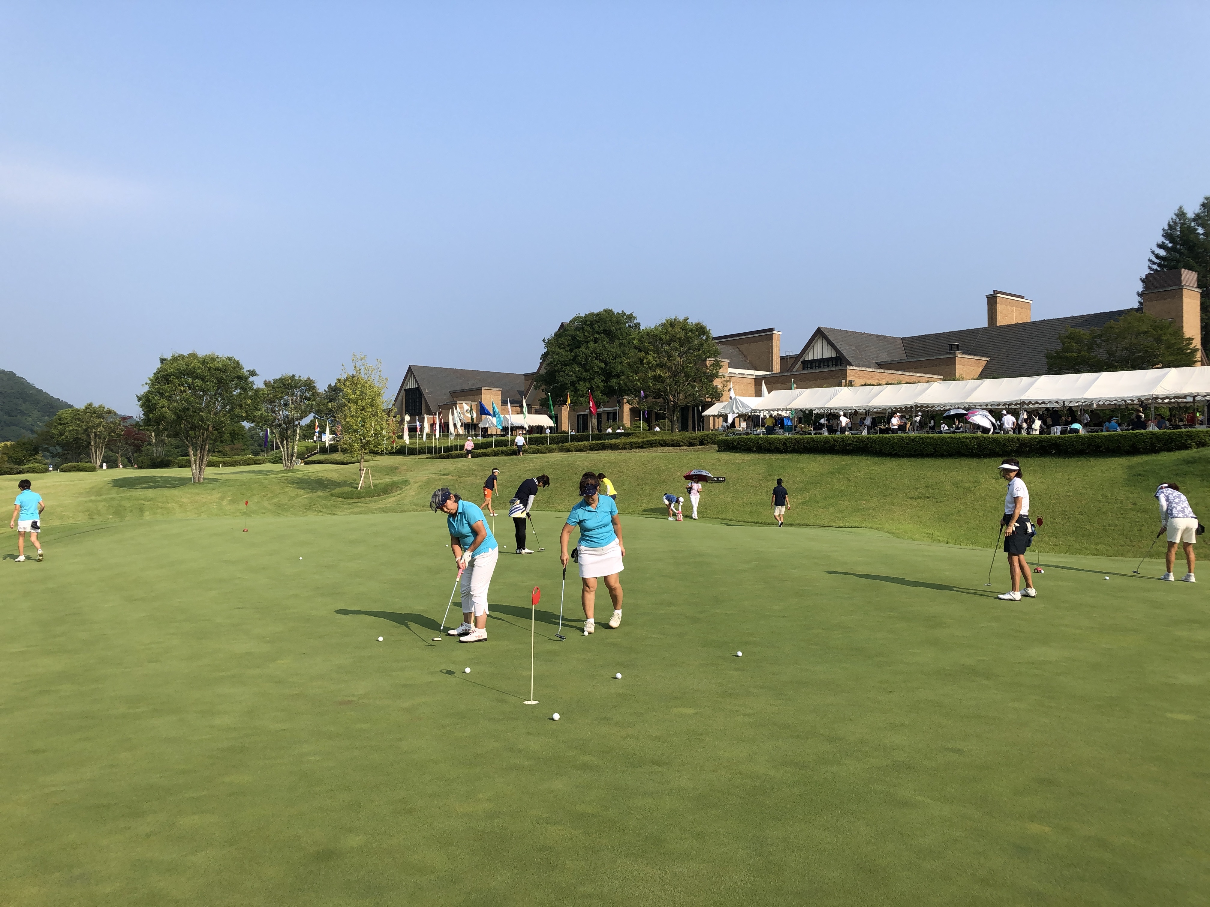 アッちっち~アッちっち~ 噴き出る汗又汗~ 山梨メイプルポイントゴルフが今年の 女子ゴルフクラブ対抗東日本決勝大会の場だった! 東日本の各地から予選で勝ち上がった38チームが代表の名誉をかけて挑んだ汗と涙の戦いだった! 百戦錬磨のベテラン、あっちこっちで戦っている有力選手など~ 初参加選手は、かなりの緊張が見て取れる~ 親父が率いるチームもベテラン3人に新人1人の布陣だ。 先陣で出たベテランが前半で失速、次のエースも伸ばせず、 3人目がまずまずだった。 そして4人目の新人がやっぱり伸ばせずこけてしまった? 後半少し持ち直したが、もう焼け石に水。 ということで18位と下位に甘んじてしまった! 選手は酷暑の中、それなりに頑張ったが、力及ばずだった。 結果ここまで来れたのだから、良しとしなければいけないが コマ不足だった? 来年また決勝大会に出られることが前提であるが、 もっと戦力強化しないと優勝争いは出来ない? 2番手3番手には一段の努力が求められる~ 終わって気が抜けているが、とんでもない酷暑に事故や病気が無く終えて先ず良しとするか?