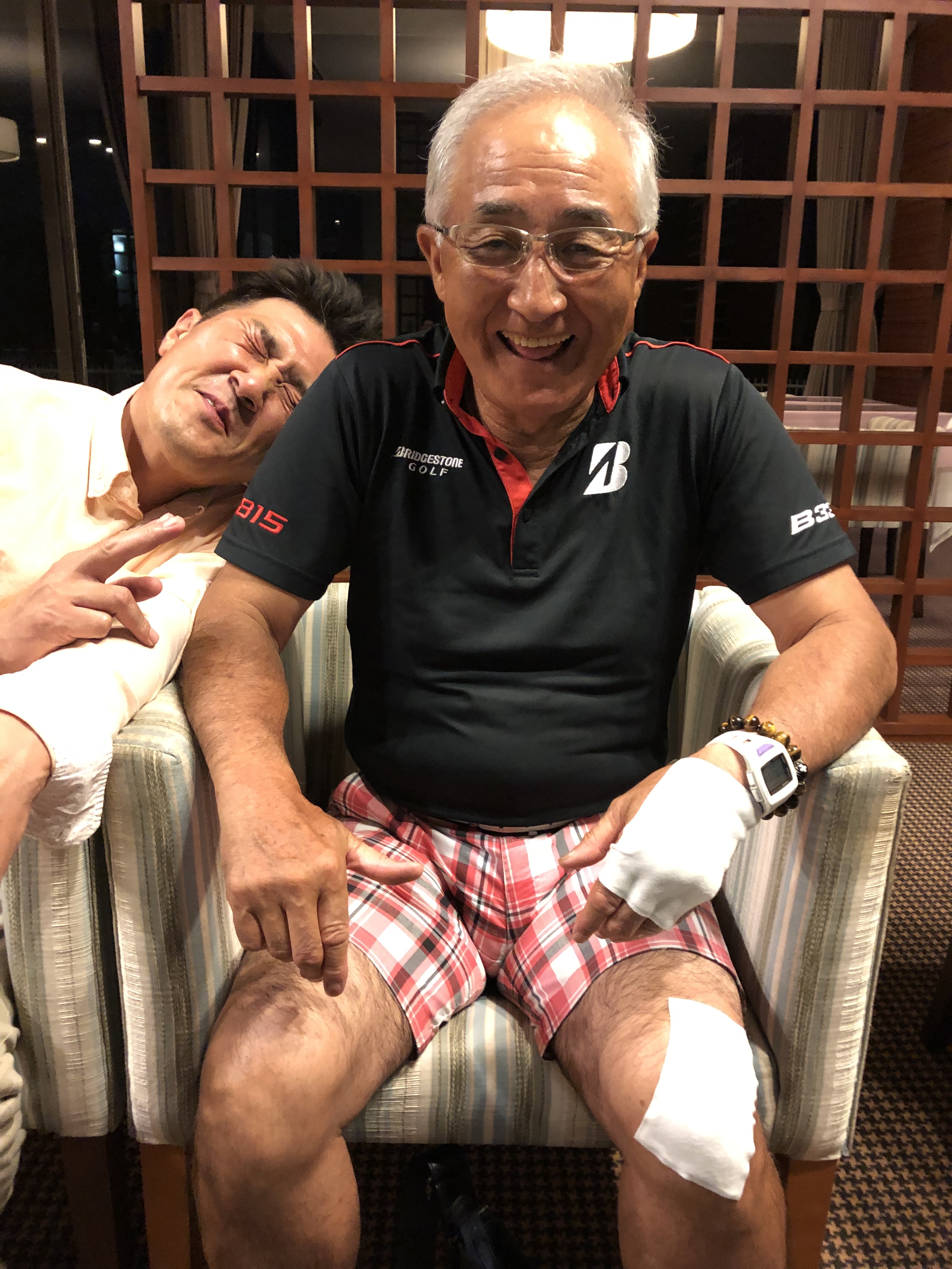 2019年08月13日 19:01 コメント 4 件 一番風呂だ~昨夜から 手を打撲(?)して 一晩中痛くて朝まであまり眠れなかった? 今朝は8時スタートであったが、 とてもとてもゴルフが出来る状態でない! 6時に起きて朝食に~ 仲間に今日はプレー出来ないと告げ、 ハーフだけカートで廻ることにした。 風が無く今日も暑い プレーして居ないのに、もう汗だくだった? ランチをして仲間が残りハーフ行きを見届けてから、 お風呂に行ったら10時半くらいであったが、入浴OKということで”どぼ~ん” 大浴場独り占めで、もちろん誰も来ない! 痛い手首や手の甲をさすり揉みながら、のんびりと~(笑) 痛いには違いないが、手首少し動くので骨に異状ないかと? 明日レントゲンで確認しよう! 仲間が16~17日、何とかコンペに参加して欲しいと言われ、 挨拶も依頼されているのだが? 今現在、大分快方に向かっている感じなので、 行けるかと~ 懲りない親父です!(笑)
