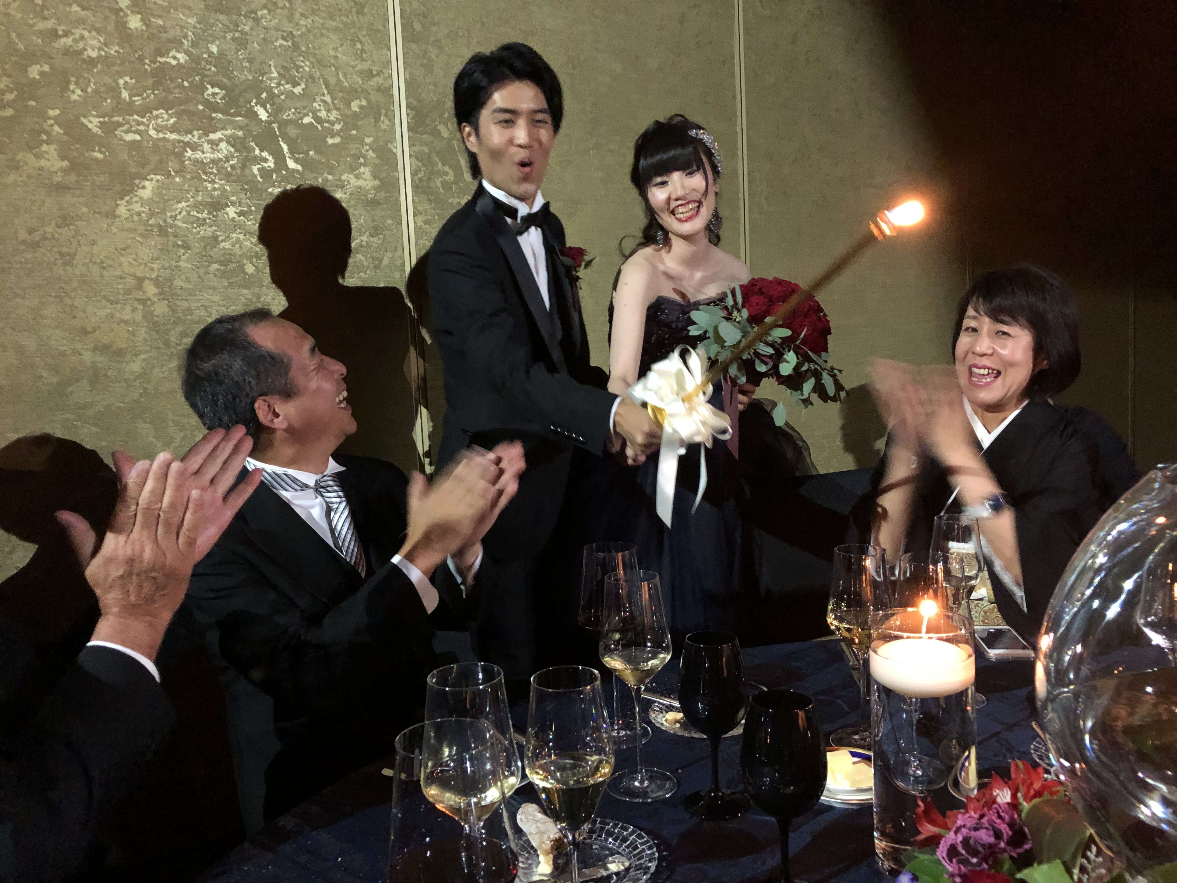 2019年09月22日 18:55 コメント 9 件 何年ぶり~結婚式参列は?連休中日 お天気を心配しながら六本木へ~ 現役時代通った日比谷線で当時の下車駅から1駅先である。 懐かしい思いをして六本木に到着だった。 下車して駅頭に立って、どう行ったらいいのか見当がつかなかった? 何のこと無い地下鉄から繋がっている!(笑) 甥っ子の長男の結婚式に参列だったが、 親族ということで結婚式から始まった! 披露宴は若い二人が企画したので、挨拶から異例ずくめ? ウェルカムドリンクとおつまみ おつまみにパプリカとか、きゅうりのサラダ~ このソースが絶品だった。 恒例の主賓の挨拶なし 新郎新婦のバンド演奏 欅の木で両家と新家庭用の掛け時計の制作模様のビデオ放映など そのスタイルは、これまでのものと異質だった。 料理も美味しかったが、伝統的なフレンチとは違っていた! それにしても久しぶりの結婚式参列で、戸惑うことばかりだった?(笑) 両家新郎新婦、 奮発したもんだ?(笑)