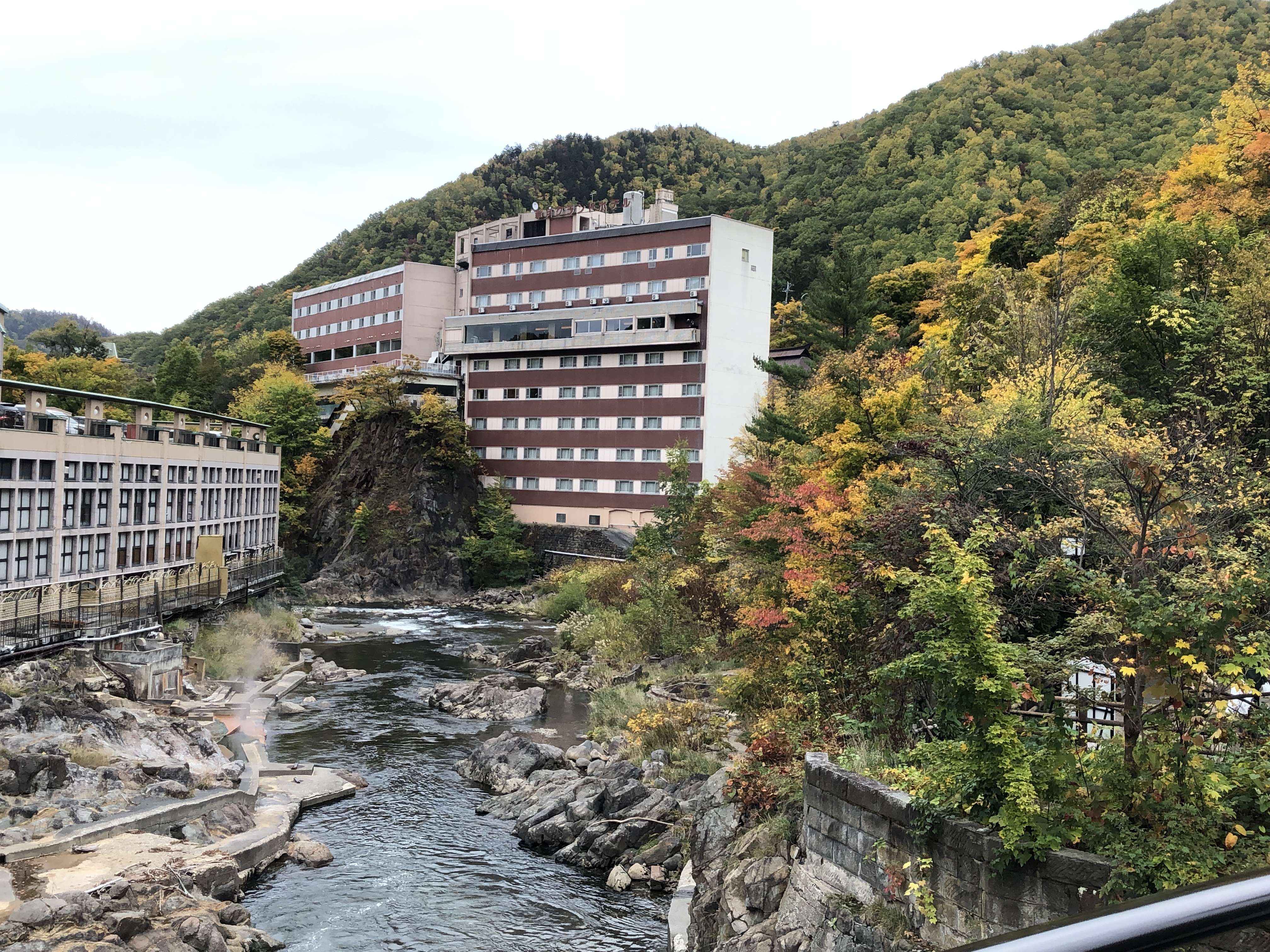 今週の天気予報は 連日晴れの予報~ ところが急に雨になったりで、 どうしたのかな? 気温は20度前後かと思っていたら、今は何となしに 寒く感じてやっぱり立冬過ぎているんだと認識! 先月下旬青森八甲田山の麓 酸ヶ湯温泉に行った友人が、まだ紅葉で真っ赤になっていないと言っていた? 自分の経験では、10月の中旬は紅葉見物は遅い位だ! テレビの予報で明日は、木枯らし一番が吹くらしい? やっと本格的な冬の到来かな? 雪国出身であるが、寒さに弱くなった親父は、 嫌いな季節の到来である! 気温の変化が続く可能性あるので、風邪予防しましょう! 写真 10月12日の北海道 定山渓温泉