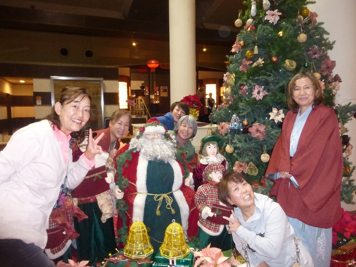 我女子会の忘年会兼還暦祝い ホテルの特別の計らいで、個室を準備頂いた! 還暦の女性が料理長と懇意にしているとのことでした。 食事はバイキング料理なのだが、 我々には、ステーキや前菜を別個に出してくれた! 女6人アルコールが進むにつれて、 テンションが高くなり、男が居ること忘れる位だ? ゴルフも強いが、アルコールも凄い~ 宴会場で2時間飲む飲む~ ビールにワインがあっという間だ? 終わってホテルのイルミネーション見に行ったが、 流石に那須高原寒い~ イルミネーションがあっちこっちできらびやか~ こりゃカップルならいい雰囲気なんだろうとお馬鹿なこと考えて?(笑) その後部屋に帰ってからも、還暦の赤ちゃんちゃんこ~ ケーキのお祝いやら~ チームメートからのいろいろなプレゼントだった! 親父流石にお疲れで、 一人温泉に浸かって、露天風呂の梯子だった!