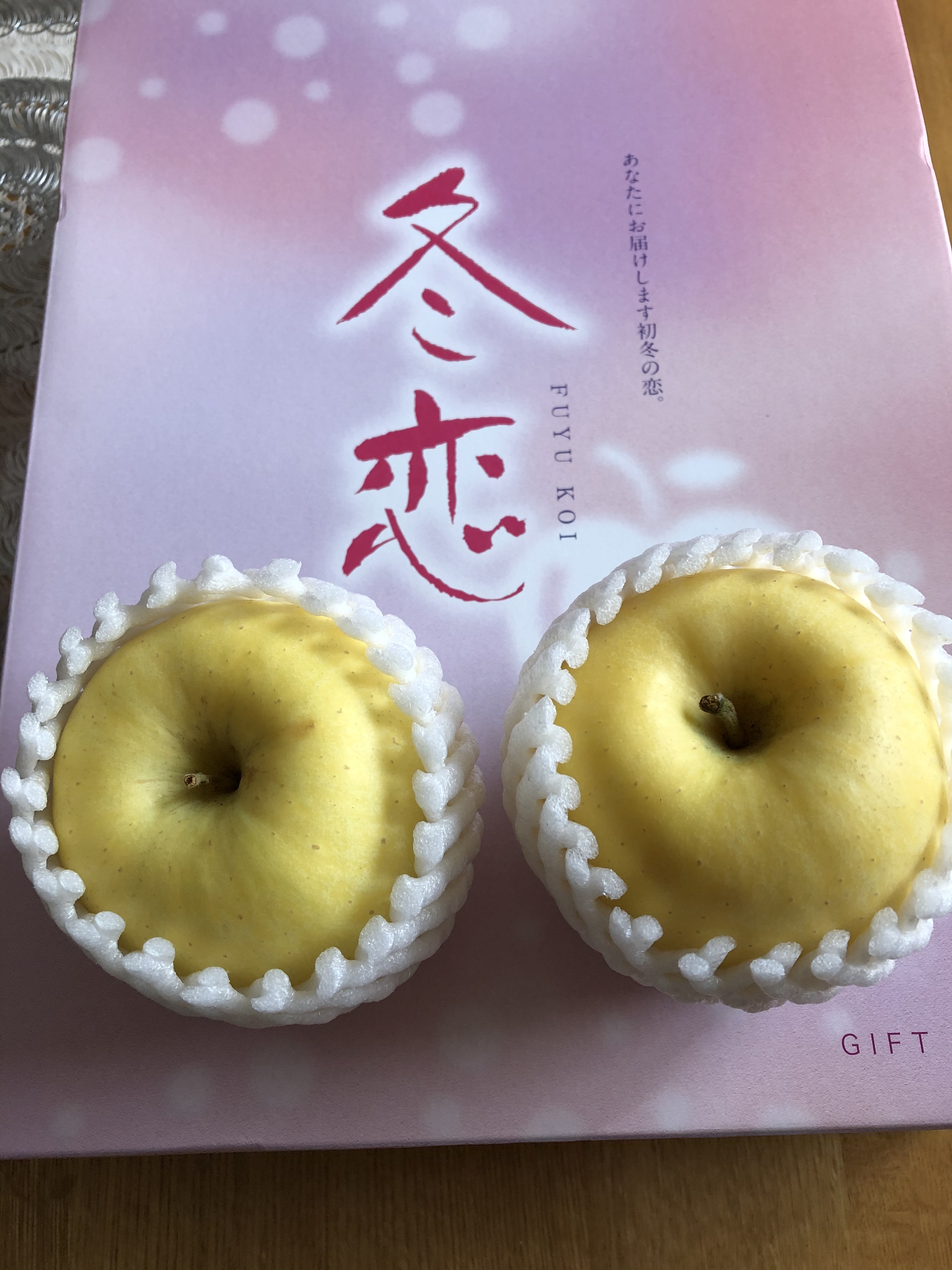 2019年12月10日 11:48 コメント 11 件 ”冬恋”~ん何の事?オシャレな箱で 送られて来て、何だろうと~ ”冬恋”と言うブランドのりんごでした! パンフレット見ると ”あなたにお届けします初冬の恋”だって~ 岩手大学で研究して生まれたりんごで、平成14年に”はるか”と 命名されたりんごだそうです。 黄色いリンゴは、ジョナゴールドなんかありますが、 これだけ蜜の沢山入った黄色いリンゴ初めて見ました? タマ親父、りんごの産地の津軽生まれなんで、味にはちょっと 煩いのですが、これは美味しいです! 今まさに妹から送られた弘前リンゴがまだ残っていますが、 食べ比べてこの黄色い冬恋”の方が、糖度が高く遜色ない? りんごは弘前と思っていたのですが、まさか岩手県でこんな美味しいリンゴを作っていたなんて? お見それして 贈って頂いたゴルフ仲間に感謝です! 黄色いリンゴに蜜が入っているなんて、見たこと無かった? また良いもの見つけられて、有り難かった!(笑) 写真 1枚目 はるか” 冬恋と言うりんご 2枚目 冬恋”の紹介 3枚目 弘前りんご ふじ”