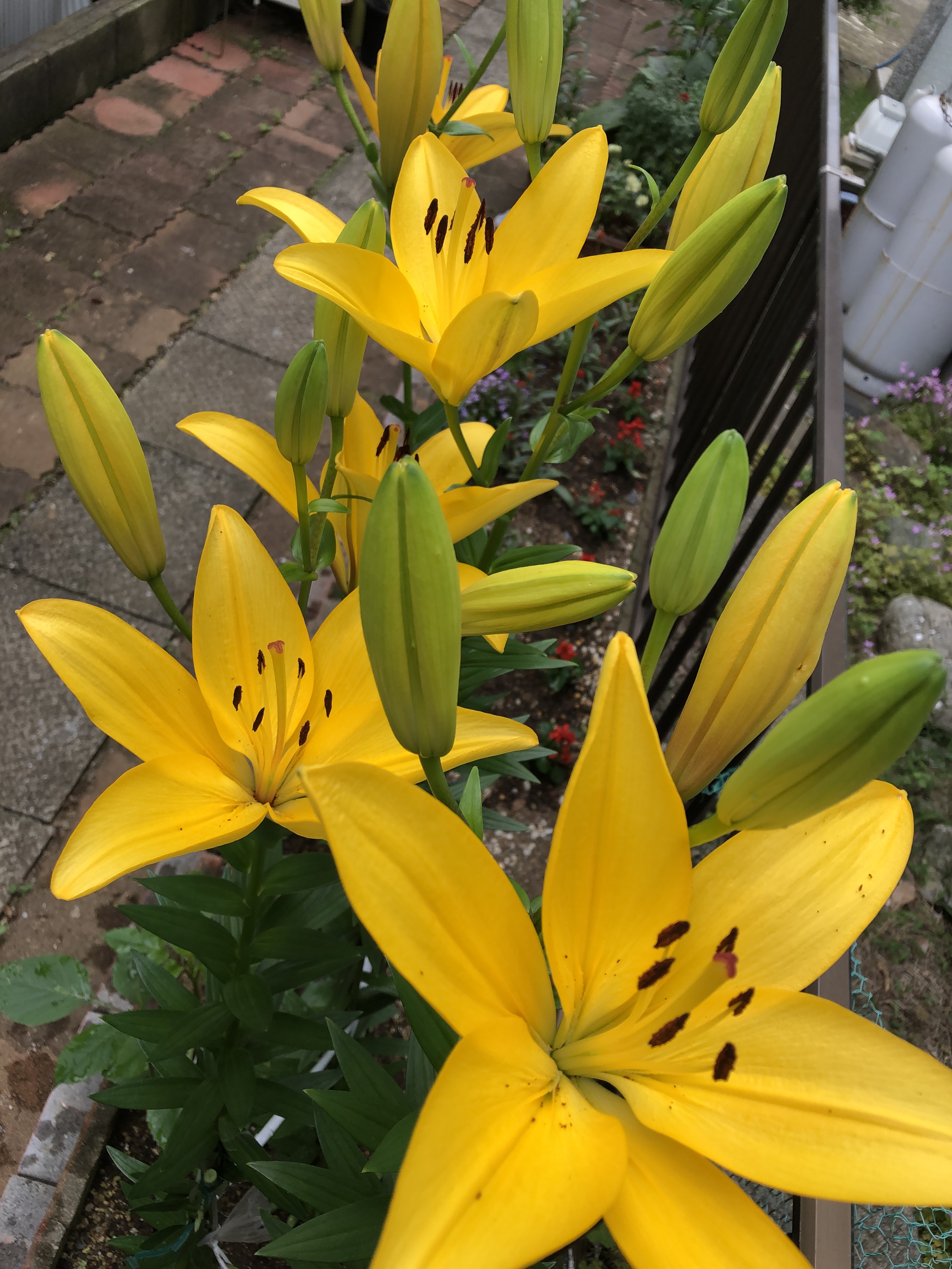 今日は 特別に晴れ上がっていないが、暑い ちょっと前の天気予報は、今週は雨模様のはずだった? しかし 変わってしまって雨の予報が無くなった? 湿気が多くむし暑いが、梅雨時期なのでまぁ仕方ないか~ 我が家のゆりが咲きました。 丈がやたら大きくなって、植えた将軍さまの身長くらいあります? もちろん花ビラも特大だ! 咲くまで今日か明日かと待っていたが、咲きそうになって約一週間たってようやくです? タマ親父、このゆりを育てるのに何にもしていないが、 雨が降らないので”お水やりをしました。 まだつぼみが沢山ついているんで、しばらく楽しめそうです! 写真 1枚目 今日6月3日    2枚目 6月2日    3枚目 5月17日