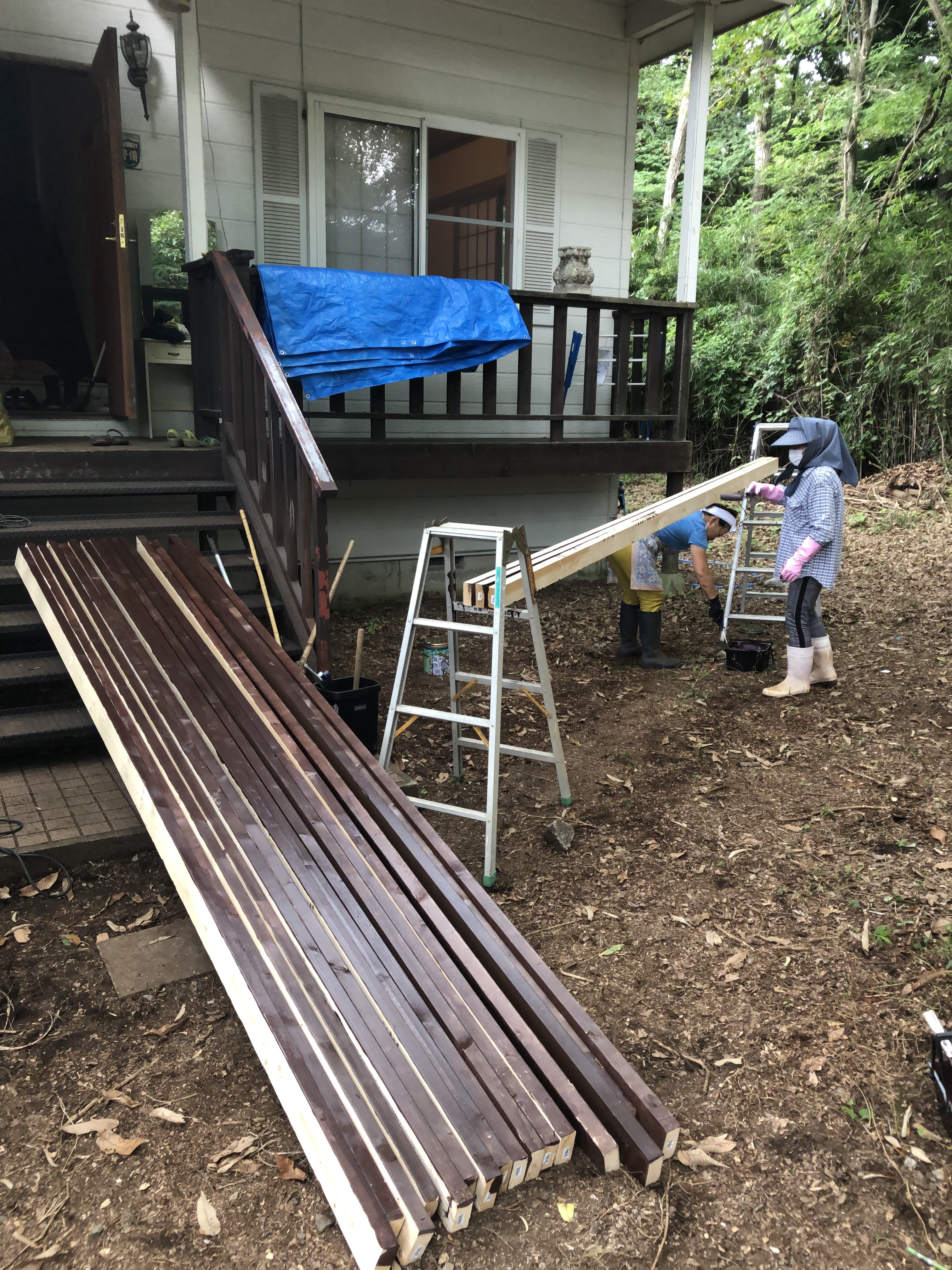 昨日今日と最後の仕上げで やっとリフォームがおわった! 友人の別荘を改修工事して販売だ! ひょんなところから タマ親父、頼まれ無いのに自費を支払って〜 知り合いの業者さんが来てくれて、 泊まり込みで作業した結果、見違えるようになった? 自分達も一緒に頑張った? ただし 将軍さまのことだけ? 自分は、坐骨神経痛が出て、役立たずだった。 それでも サンテラスの張り替え、入り口含めたデッキの塗装、 家の周りの整備、木々の伐採、駐車場の整備などなど やり終えて一安心した! 携帯で写真を撮ったが、何故かサイズ合わず? 今度改めてアップすることに〜 あしたは、8日ぶりに船橋の自宅に戻る! 暑い下界は、どうかな?