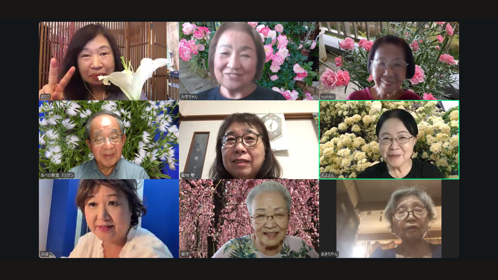 今日はリモートオフ会でした プレミアを終了して 個人的な集まりも三回目になりますが 中々揃って パッと一同には 上手くいかないものですね~ まだまだホスト役は難しいですので およよんさん、くにちゃんさんにお任せです 10月14日には Windowsのサポートも終了するので それまでは慣れておこう・・・ ということから始まり 各々 スマホや タブレット、パソコンなどでの参加です 癖というのも面白いもので 私もつい前のめりになってパソコンの画面にくぎ付け! 「みすちゃん 離れてパソコンをもっと立ててみて!」と言われて アァ そうだった!ついつい目が悪くなってるので近づきすぎ・・顔が半分切れてます 夢中になってて 指定されるまで 無意識にやってました 今回も誰かが 接続が繋がらず ワイワイガヤガヤと外野は賑やかにアドバイスしますが 原因も分からず繋がったり切れたりの連続でした 慣れるまでが暫くの辛抱でしょうね! それはそれで 勉強にもなり自分がホストをする時の参考にもなります あっという間の1時間でしたが・・・結局 何をしゃべってたっけ?(笑)