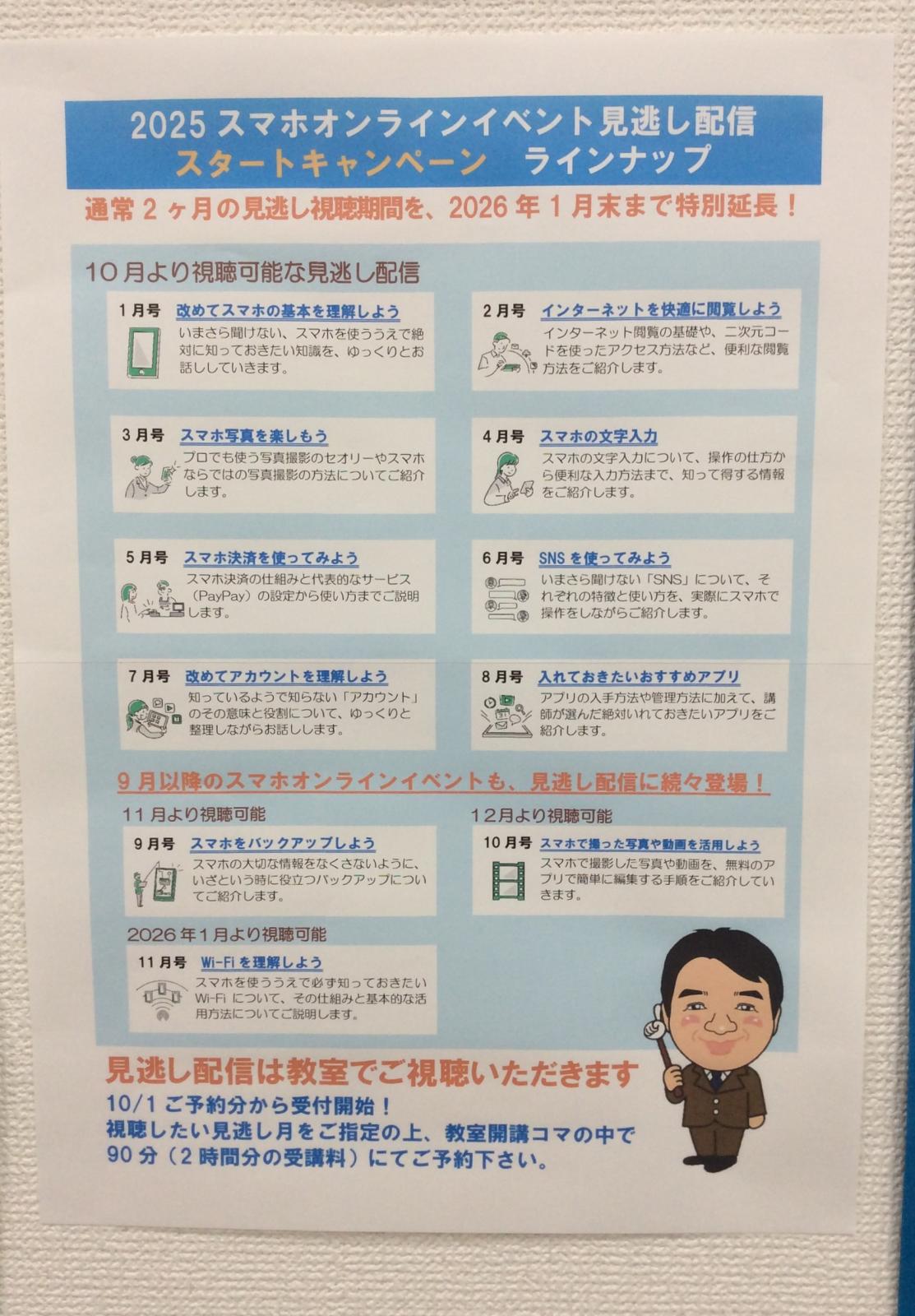 2025年09月23日 16:01 コメント 1 件 10月オンラインカルチャーこんにちは。パソコン市民講座 バロー豊橋教室です。 10月のオンラインカルチャーイベントの参加申し込み受付中です。 申込期限は9月末までです。 気になる講座がありましたら、ぜひこの機会にご参加ください。 ・-・-・-・-・-・-・-・-・-・-・-・-・-・-・-・-・-・-・-・-・-・-・ 10月オンラインカルチャーイベント ・今日から始める認知症予防 ・はじめての筆文字アート ・-・-・-・-・-・-・-・-・-・-・-・-・-・-・-・-・-・-・-・-・-・-・ 日程などの詳細の確認や、お申込みはプレミアサイトトップページの 【オンラインカルチャー】のバナーから行っていただけます。 ご自宅からZoomでのご参加となります。 もしZoomの使い方やお申込方法が心配な方は まずは教室までご相談ください♪