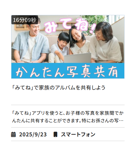 2025年09月26日 19:44 コメント 4 件 初「みてね」アプリこんばんは(^o^)丿 今週のワンポイントレッスン動画 「みてね」で家族のアルバムを共有しよう このアプリの事は前から知っていたのですが 実際に自分が使ったことがないので ブログでご紹介するのを控えてました。 すると 今年7月に出産した姪っ子から LINEがきて 「みてね」に招待されました! 8月のお盆に赤ちゃんに会いに行って 抱っこさせてもらいました。 あれからまた大きくなったかなあと 思っていたので 最近の赤ちゃんが見れて嬉しかったです。 姪っ子夫婦の両親や兄弟 総勢10名が招待されてました。 コメントがついている写真があったり 動画もあって 改めて、なんて便利なアプリなんだと思いました。 お孫さんがおられる生徒さんが 利用されているのがよく分かりました。 定期的にLINEで写真を送るのも大変ですよね。 共有アルバムにさえアップすれば 家族全員が見れるので 考えた人すごいですね。 これからも 姪っ子の息子の成長が リアルタイムで見れるので 楽しみが増えました(*^-^*) 小松