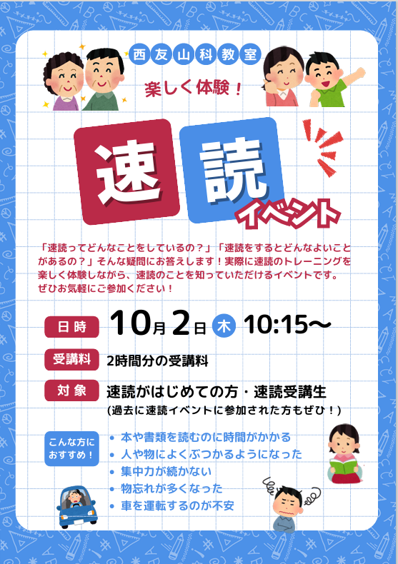 •  2025年09月17日 16:53  コメント 0 件 10月速読イベントのご案内