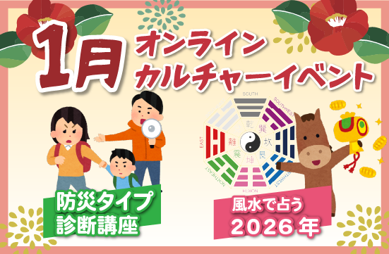 2025年12月06日 15:57 コメント 1 件 1月オンラインカルチャーこんにちは。パソコン市民講座 バロー豊橋教室です。 1月のオンラインカルチャーイベントの参加申し込みが始まっています。 気になる講座がありましたら、ぜひこの機会にご参加ください。 ・-・-・-・-・-・-・-・-・-・-・-・-・-・-・-・-・-・-・-・-・-・-・ 1月オンラインカルチャーイベント ・ 防災タイプ診断講座 ・ 風水で占う2026年 ・-・-・-・-・-・-・-・-・-・-・-・-・-・-・-・-・-・-・-・-・-・-・ 日程などの詳細の確認や、お申込みはプレミアサイトトップページの 【オンラインカルチャー】のバナーから行っていただけます。 ご自宅からZoomでのご参加となります。 もしZoomの使い方やお申込方法が心配な方は まずは教室までご相談ください♪