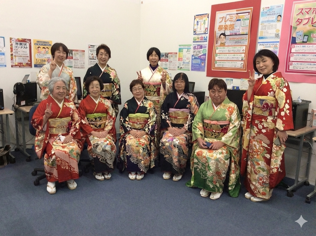 こんにちは 豊橋教室のブログへようこそ! 今日は、新年初イベント 紙の写真をスマホでスキャンしてデータ化する 「Googleのフォトスキャン」を利用してイベントを開催いたしました。 ご自身の、紙の写真をお持ちいただいて、 フォトスキャンでその写真をスキャンして、スマホのカメラロールやGoogleフォトにそのまま保存される、優れものです。 しかも、反射で光っているところも補正してくれるので、とっても便利 昔のアルバムは、ビニールみたいなものに入れてあることが多いので、 そこから出すのも一苦労。 そんな手間もいらないのもいい所です。 皆さんお持ちになった、写真を真剣にスキャンしてくれていました。 フォトスキャンをすましたら、その写真をGoogleGeminiを使って修正をしたり さらに加工をしたりして、楽しい時間を過ごしました。 皆さん、スキャンも真剣でしたが、Geminiでの写真加工も、 モノクロの写真をカラーにしたり、着物の柄を変えたり、 背景柄も変えて見たりと、それぞれ思いついたもので 写真を加工していました。 AIのイベントはよく参加されても、なかなか実際に使うことが少ないのでは? とおもい、今日はAIも楽しんでいただきました。 その成果を、教室のブログで発表です。 私の首元のセーターはご愛敬かしらね(笑) AI最高です。(^-^)