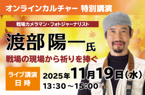 2025年10月06日 14:40 コメント 0 件 11月のイベントのご案内です。朝と昼の寒暖差が激しいですが、みなさま体調くずされていませんか? インストラクターは元気いっぱいです。(あっちこっち痛いですけど ( ;∀;) ) 11月のオンラインカルチャーとイベントのお知らせです。 ●渡部陽一氏の オンラインカルチャー 戦場の現場から祈りを捧ぐ 命の尊さ、深い家族愛、平和歩の希求を写真と力強い言葉で発信される予定です。 改めて平和っていいなぁ~を実感できると思いますよ ライブ講演日 11月19日 水曜日 13:30~15:00 (教室定休日の為自宅での受講となります。) 上映会は 11月22日 土曜日 10:30~12:00 (教室受講可能です。) 11月25日 火曜日 13:30~15:00 (教室受講可能です。) ●毎年恒例のカレンダーイベント 毎年 作成してくださっています。受講生の皆様 ありがとうございます。 今年も是非 世界に1つのカレンダー作成 ご予約お待ちしております。 ★初参加の方、とても素敵なカレンダーが作れますよ 見本を教室でご用意しております。 お子さんのやお孫さんの写真やペットちゃんの写真 少し大きくなられたお子さんも 小さいころからの写真を使って作成もOK もちろんご自分の若き日のお写真も大歓迎です。 写真しかない方もご安心ください。 イベントまでに スキャナを使って写真をデータ化しませんか? 授業は2時間 自習で教室でデータ化もOKですよ みなさまからのご予約お待ちしております。