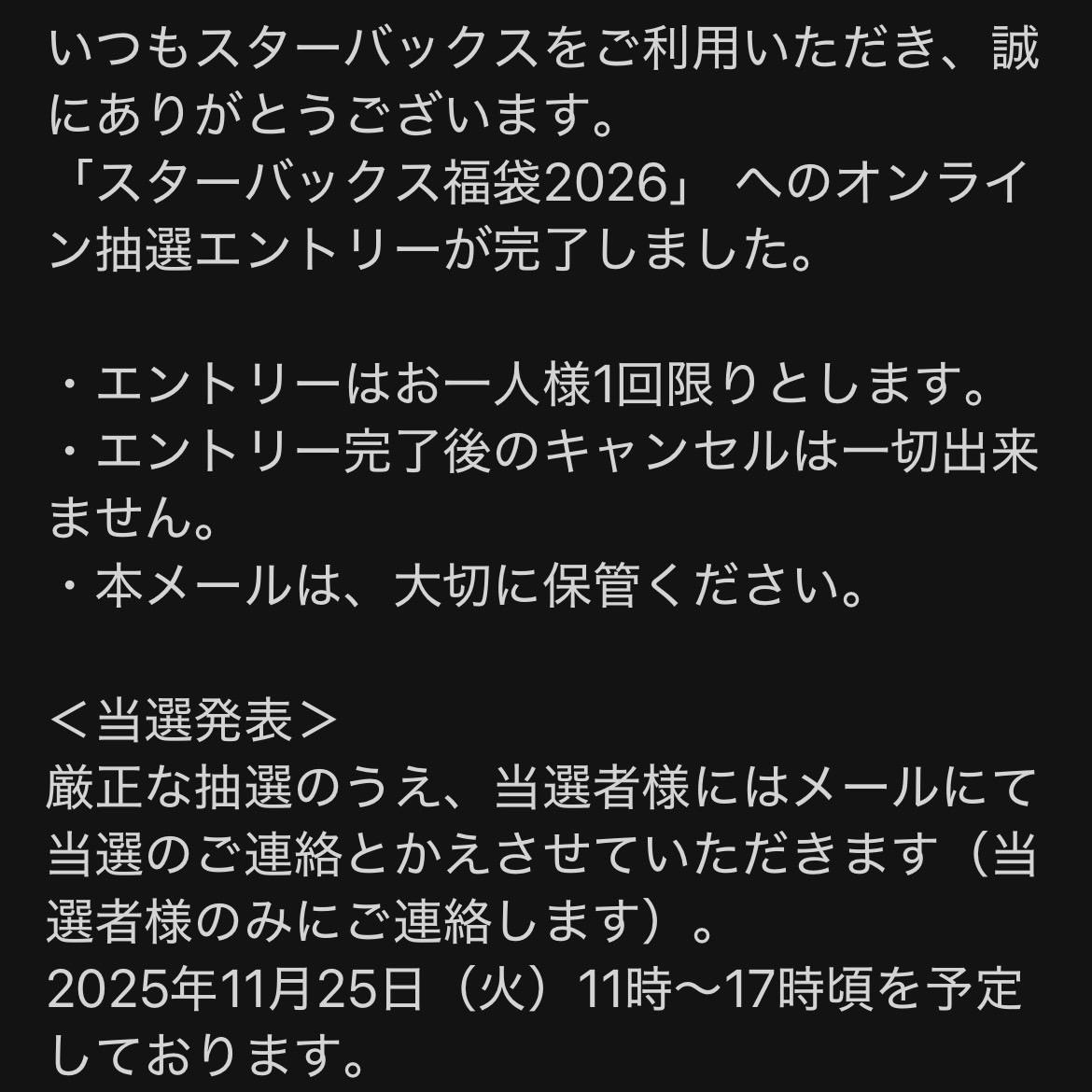 2025年11月14日 23:56 コメント 0 件 ξ福袋申し込み。ξこんばんは、荻野です。 教室で来月の予約表を受け取りながら、1年があっという間と話をしつつ、年末年始といえばそろそろ福袋の予約時期。 今月頭からジワジワと福袋情報が発表され、今年もスターバックスの福袋の抽選申し込みをしました。 といってももう何年も落選しているので、初売りついでにフラッと立ち寄って購入できていた頃が懐かしいです。 連日更新される福袋情報を見ながら今回はどこのを購入しようかなーと考えるのもとても楽しい時間ではあります。 事前予約なしで店頭販売のみのお店もあるのでそれはそれで何時ごろから並ぼうかとかそもそも発売日当日がお休みなのかとか色々計画も立てなければ・・・! 例年通りルピシアのお茶の福袋もそろそろ予約しなきゃと思いつつ、年末早めに自宅で受け取るのか、帰省先で受け取れるようにするのか悩み中だったり。うかうかしてると予約受付終了してしまうのでいい加減決断しないとです。 それでは今日はこの辺で。