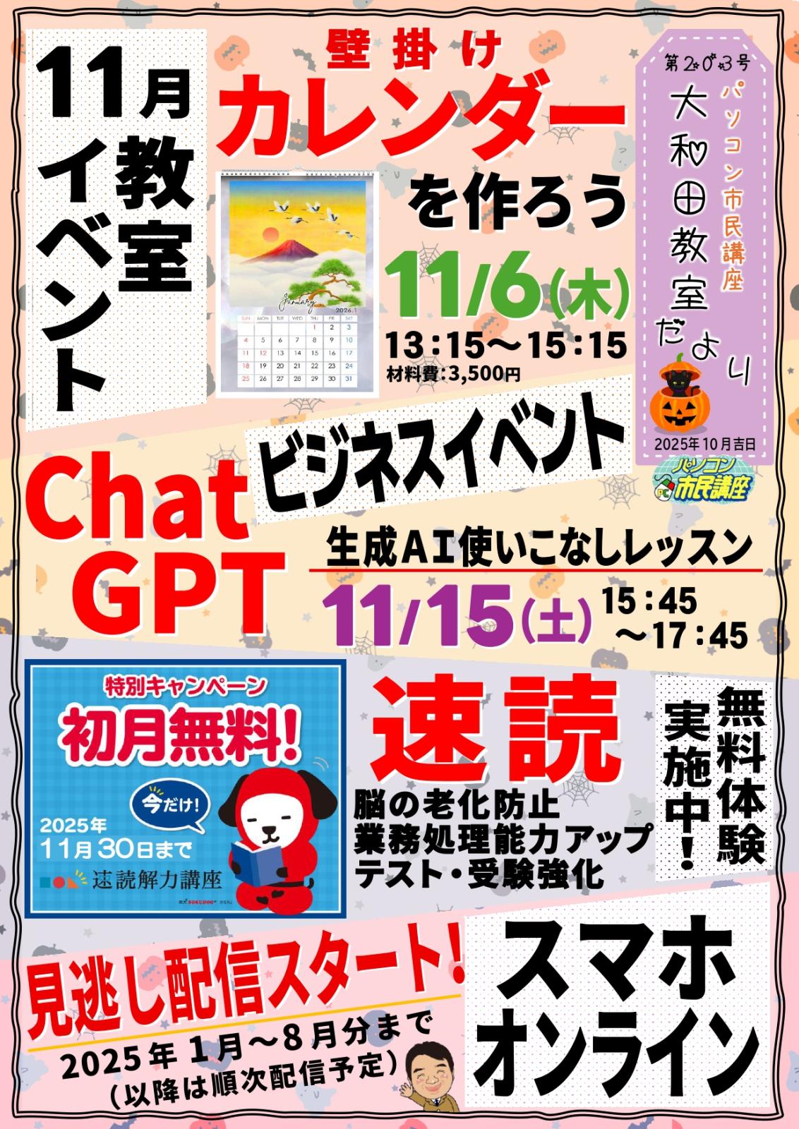 2025年10月05日 12:57 コメント 0 件 【10月教室だより&11月予約表】