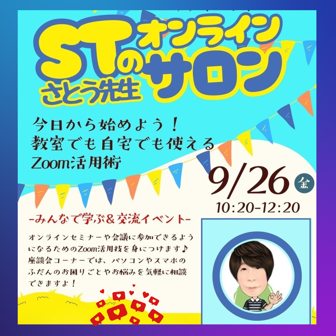 2025年09月26日 16:20 コメント 0 件 東海&九州合同イベントSTサロンとQT塾暑さも彼岸まで・・・とは よく言ったもので たしかに、朝夕はしのぎやすく なりましたね。 そんな今日は、午前と午後で 東海・豊橋教室長の佐藤先生と 中井教室長の久古先生による 豪華2つのイベントDayでした!! 午前の部・STサロンでは Zoomの新しいリアクション機能 ブレイクアウトルーム体験等々 充実の内容を楽しんで頂き、 午後の部・QT塾は、 7月に大好評だったもので おかわりの再イベントでした。 10月5日もすでに50名満員御礼で 予約終了となっている人気ぶり!! 内容は、今どんどん進化しているAI ChatGPTとGeminiを使った 【初心者向けAI活用】のご紹介でした。 基本的に2ヶ月に一度の STサロンとQT塾が、毎月交互に受講 していただけるようになっています。 両方参加のハイブリッドで充実のパソコン ライフをお楽しみ頂きたいと思います。 スタッフもしっかりサポート致しますので どうぞ安心してご予約下さいませ。 ================= 10月のQT塾は、13日㈪と18日㈯ Googleの「NotebookLM」という あっと驚く!!久古先生いち推しの 神アプリのご紹介です。 11月のSTサロンは、21日㈮ プレミア倶楽部に新登場する 「かんたんSNS」をご紹介の予定です。 =================