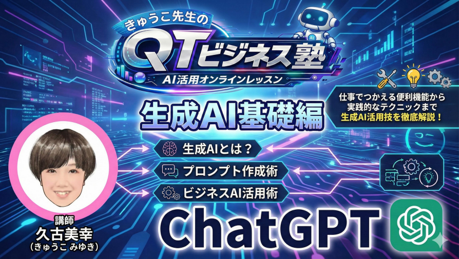 2026年01月24日 16:42 コメント 0 件 【QT塾】ChatGPTの基礎編が進化!大寒らしい冷え込みの中 教室は学びの熱量で、 寒さも吹き飛んでいました。 新年最初の【QT塾】は、 ChatGPT からスタート! 昨年12月にアップデートされた 最新情報も盛り込み 久古先生のスライド資料は、 AIを活用してさらにわかりやすく とてもきれいな画像がたくさん♪ 「なるほど〜」と、うなずきながら たくさんの事を学ぶ時間となりました。 中でも今回のメインは、 「プロンプトづくり5選」 (※プロンプトとは、 AIに指示する文章のことです) このコツを知っているかどうかで、 AIを“難しいもの”と感じるか、 “頼れる相棒”として使えるかの 分かれ道になるんですね。 実際に手を動かしてのワークタイムでは、 受講生さんが作成した画像の 出来栄えに、思わずびっくり! 「どんなプロンプトで作ったのか?」 をシェアしていただくことで、 とても参考になる学びがありました。 今年の【QT塾】 これはもう…👀 目が離せません! まずはAIの世界をのぞいてみることから はじめてみませんか? 次回からは、 基礎編・応用編に分けた90分授業へと 変更になります。 ◆2月4日㈬ 13:30~15:00(初心者向け) ◆2月8日㈰ 10:20~11:50(ビジネス向け) 詳しくは、教室でお気軽におたずねくださいね。 ================