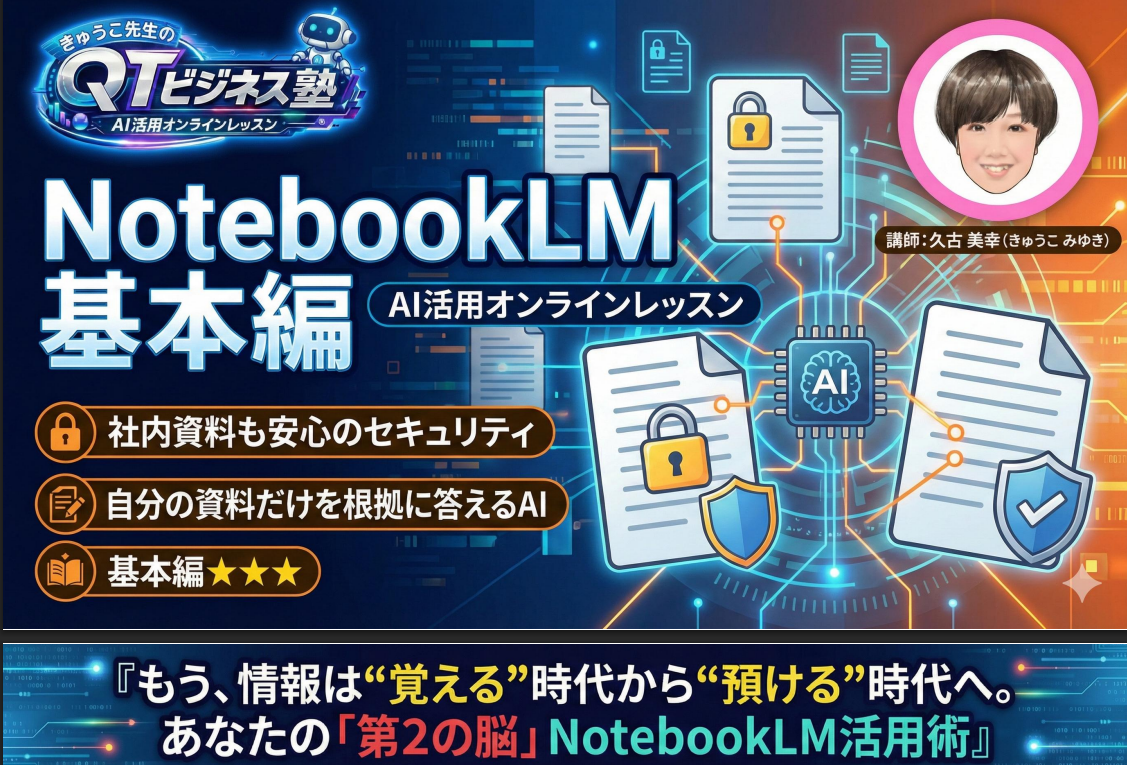 2026年02月22日 09:12 コメント 0 件 【QT塾】第二の脳 NotebookLM梅の花が見頃になりましたね。 春の陽射しとともに、 気分も少しずつ軽やかに 変わってくる頃ではないでしょうか。 久古先生の【QT塾】は、 2月から90分のレクチャーとなり 日々進化するAIを、 よりわかりやすく解説しています。 内容が盛りだくさんなので、 繰り返し参加することで 「まず知る」 ↓ 「少しずつ使えるようになる」 そんな自然なステップで 身についていきますので、 安心してくださいね。 参加するメリットのもう一つは、 Zoom操作に慣れていくことです。 画面の切り替えや、 チャットに送られた資料のダウンロード、 USBへの保存など 慣れてくると、 ご自宅からの参加もできて ぐっと便利になりますよ。 QT塾やSTサロンに参加することで 他のセミナーや講座にも安心して 参加できる力がついていきます。 さて、今月3回目の【QT塾】では、 GoogleのNotebookLMを学びました。 ChatGPTは聞いたことがあっても、 NotebookLMは初めて、 という方も多いかもしれませんね。 NotebookLMは、 自分の資料だけをもとに考えてくれる “あなた専用の第二の脳”のようなAIです。 今回のレクチャーでは、 ChatGPTとの違いを理解することが 大きなポイントのひとつでした。 教室に通っている間に、 ぜひこの2つのAIをどちらも 使えるようになって頂きたいです!! さあ、3月の【QT塾】日程を 予約表で確認して、 お早めにご予約くださいね。 他にもイベントがたくさんあり、 選択に迷うこともあると思いますので 教室でぜひ、 気軽に直接お尋ねくださいね♪ ================