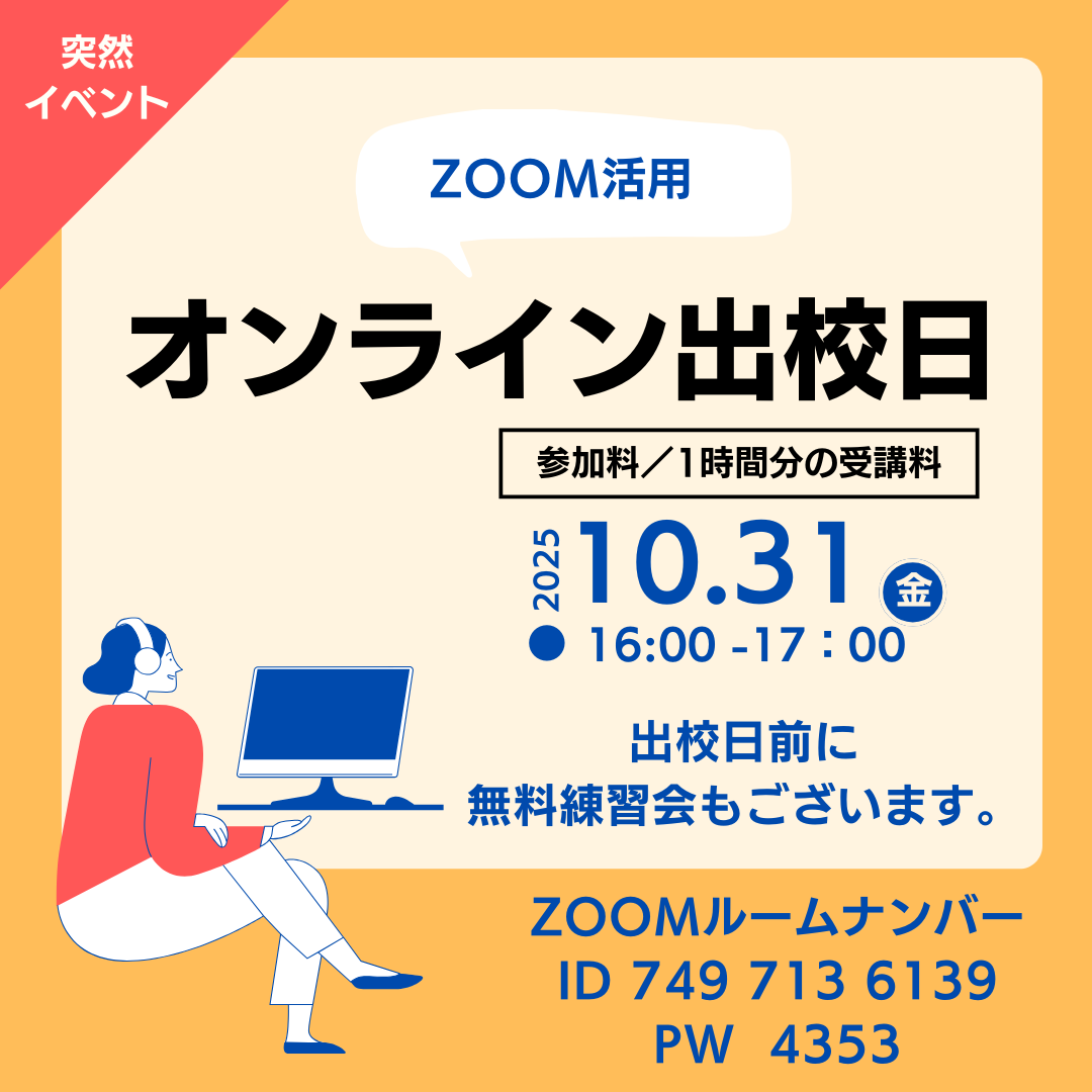 公開中2025年10月22日 20:21 コメント 2 件 10月31日は、オンライン出校日!