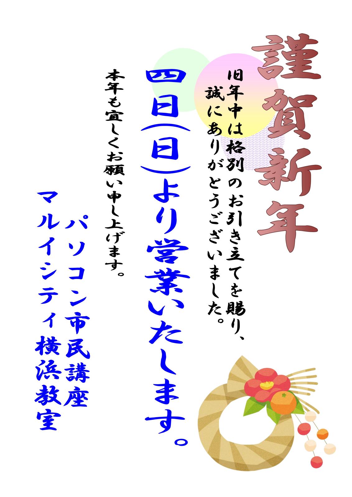 2024年12月28日 16:54 コメント 0 件 年末年始休講のお知らせ本日、今年最後の開講日となりました。 明日、12/29(日)~ 来年1/3(金)は休講です。 年始は1/4(土)より開講いたします。 今年は年末年始とお出かけされる方も多いとは思いますが、コロナやインフルエンザなど感染病も流行っていますので、どうぞお体に気を付けてお過ごしくださいね! 年明けに皆さまとまた元気にお会いできますこと 楽しみにしております(*^^*) どうぞよい年をお迎えください (^^)/~~~ マルイシティ横浜教室インストラクター 一同