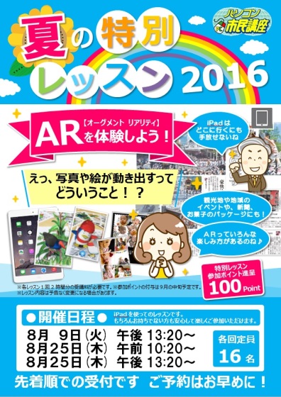 8月開催の夏の特別レッスンの日程を発表いたします。