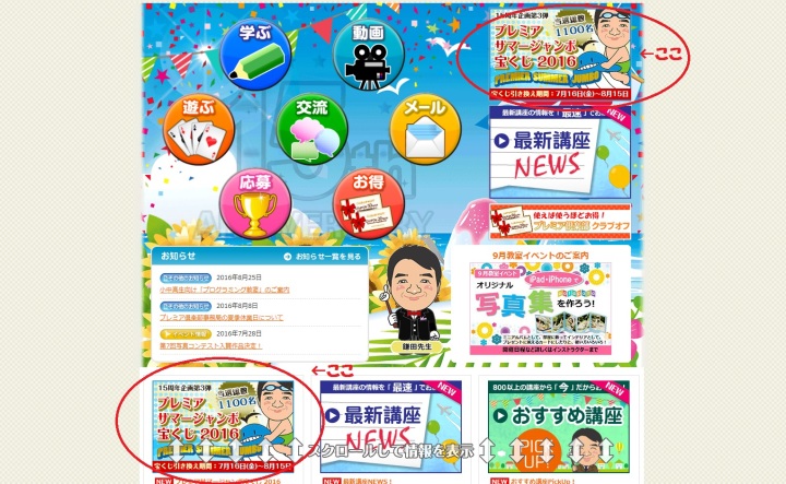 当選番号を確認するのは、トップページの一番上のバナーから。