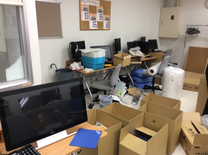 昨日までお世話になった教室を、今日は片付けをしています。