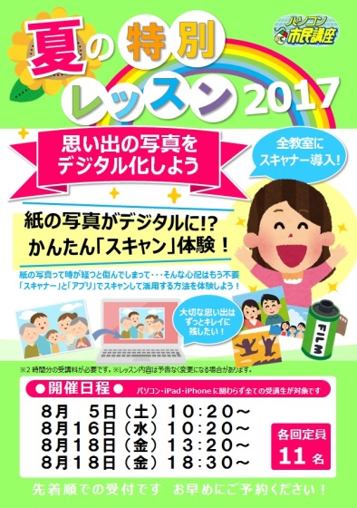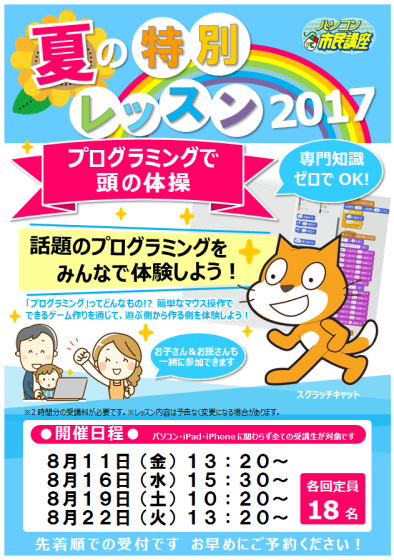 8月は、毎年恒例になった「夏の特別レッスン」が開催されます。