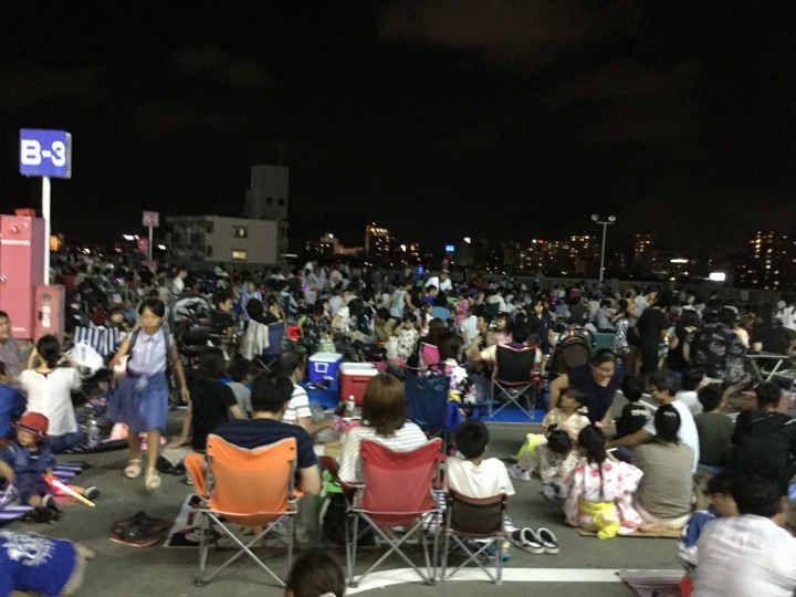 バローの屋上で、皆さんがこぞって花火を見るということを
