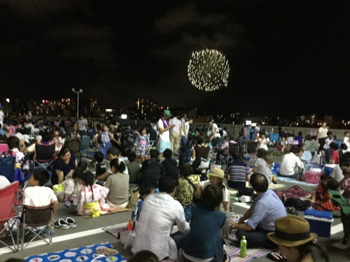 皆さん、花火を見ているのか宴会をしているのか食事をしているのか話をしているのか、
