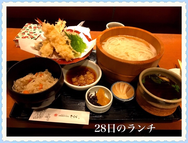 写真は28日の大阪駅で撮った物とランチは饂飩のきらく