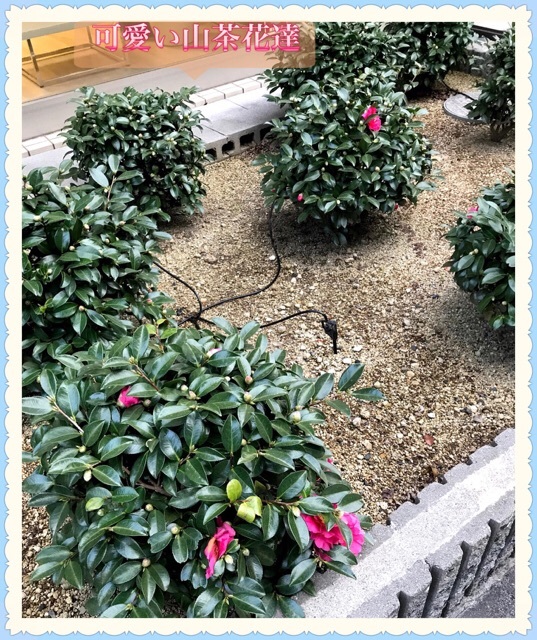 二枚目の写真は、こじんまりした山茶花の植え込みです。