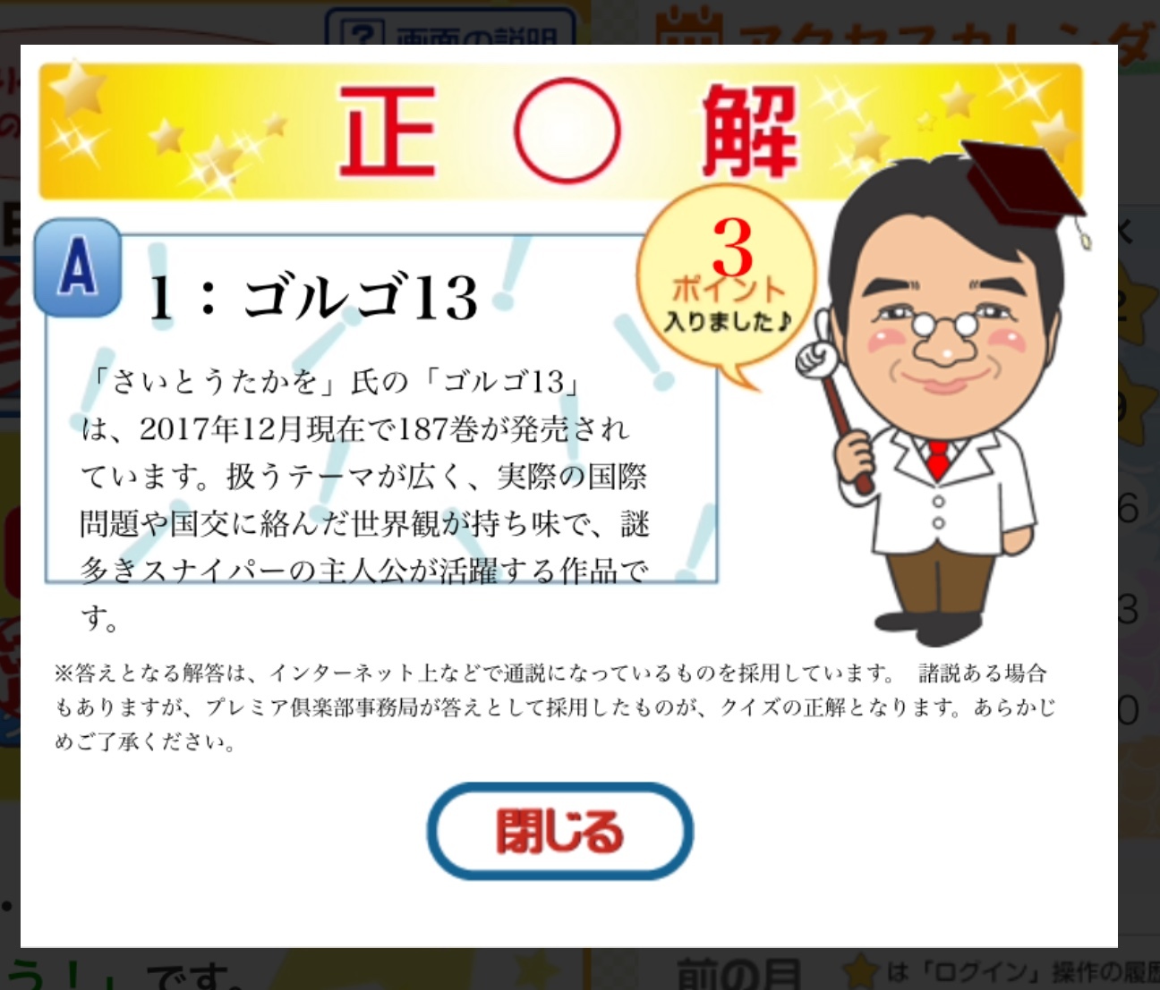 雑学クイズ、難問をクリア?