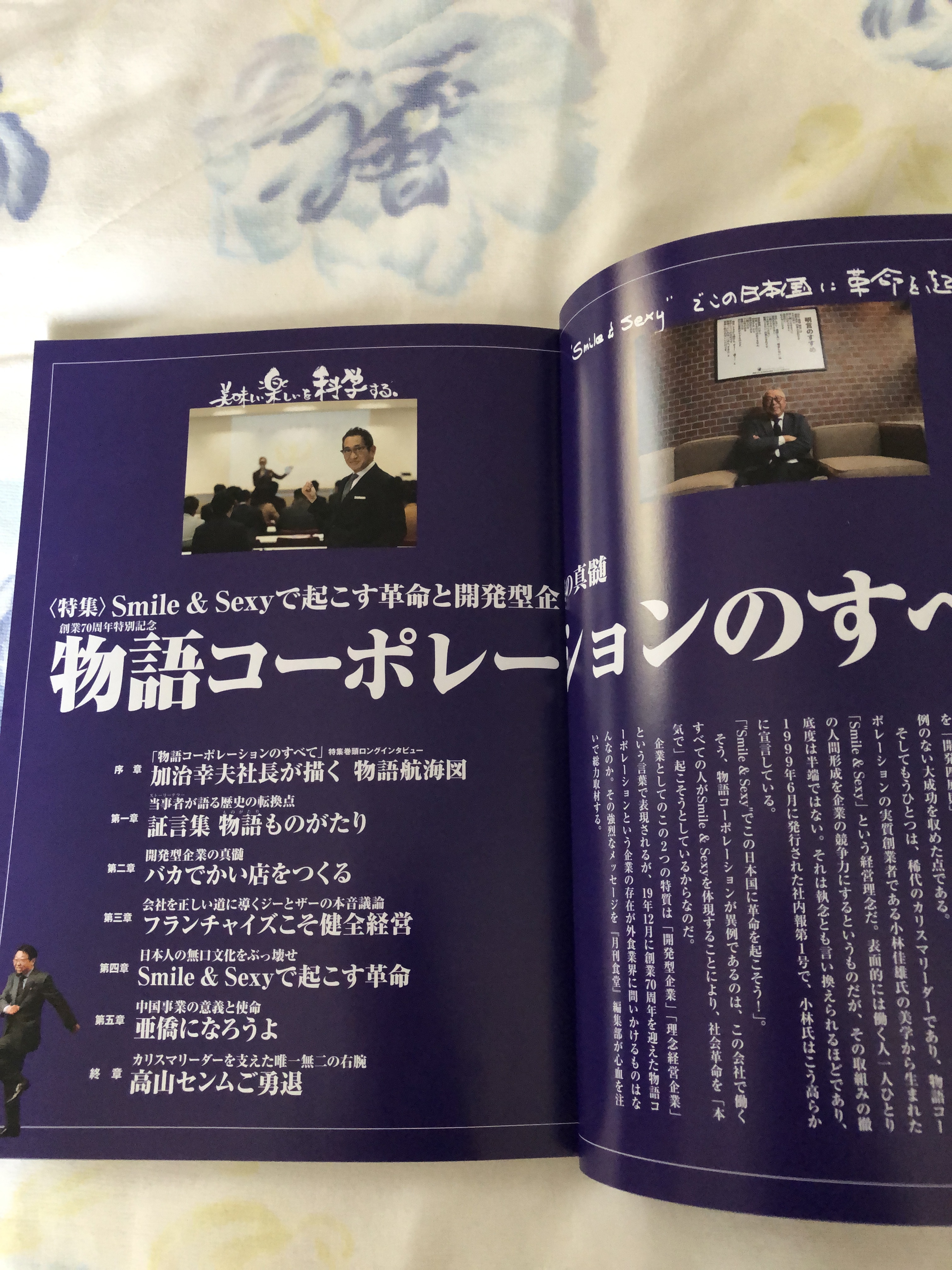 今回タマ親父のために送っていただいた雑誌、月間食堂”という雑誌、全面に渡ってこの物語コーポレーションを紹介している!