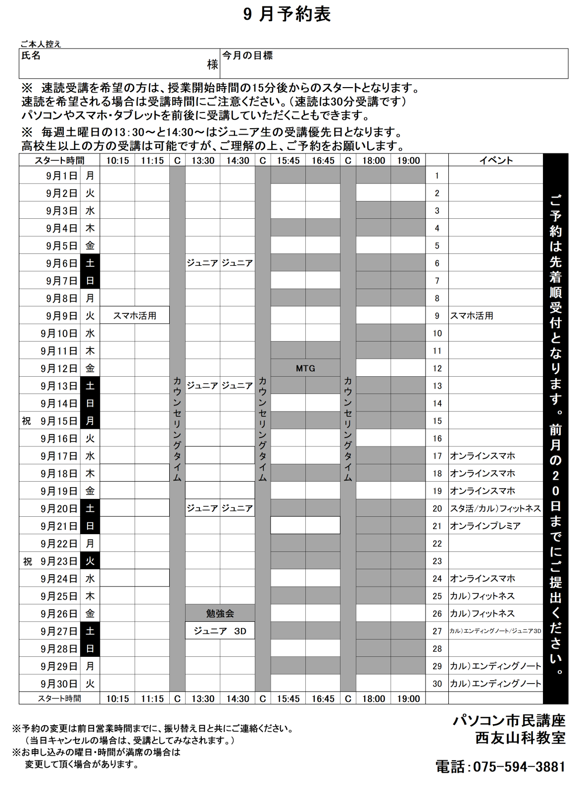 さて、本日は9月のスマホ活用イベントのご案内です。