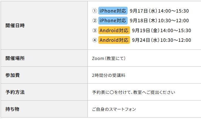 ①iPhone対応 9月17日(水)14:00~15:30