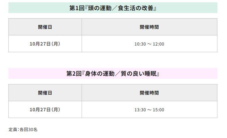 10月は「頭の運動/食生活の改善」と「身体の運動/質の良い睡眠」の