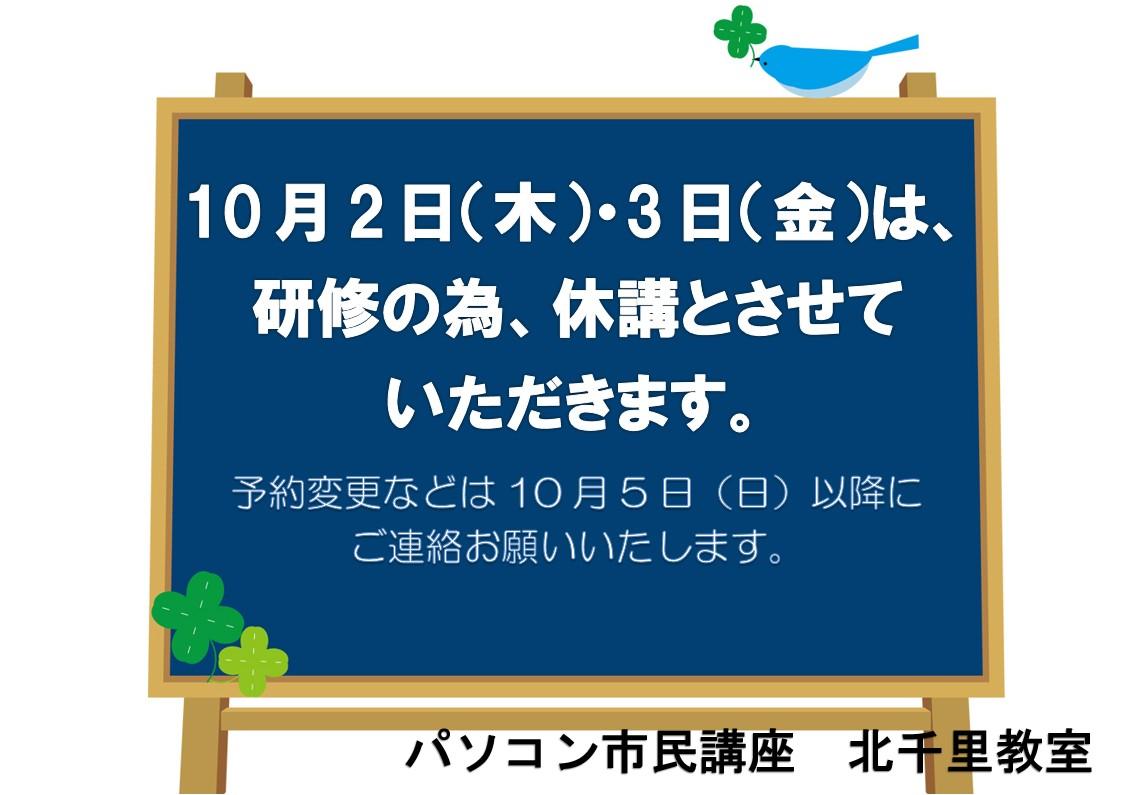 10/2(木)・10/3(金)は、研修のため教室がお休みとなっております。