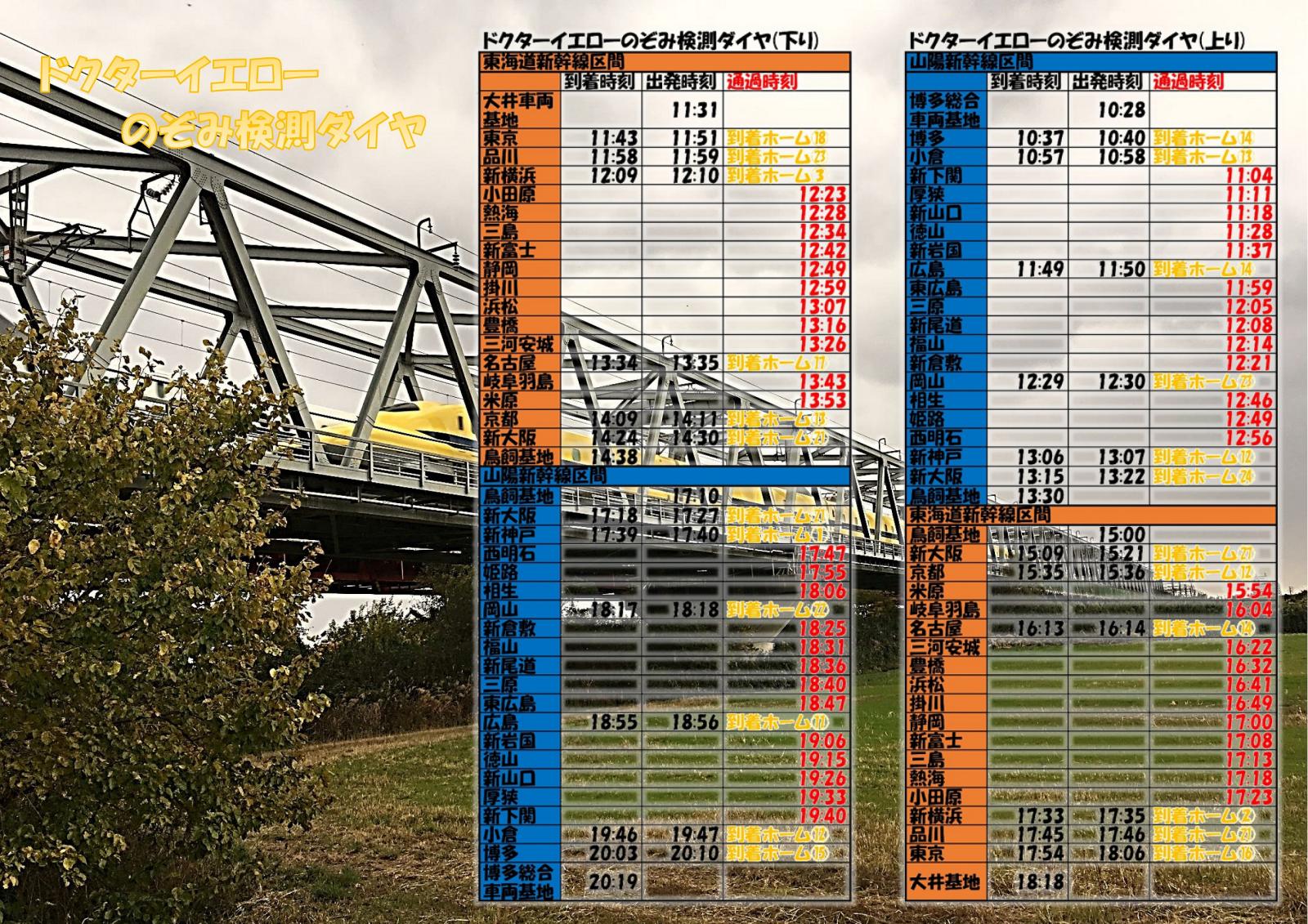 写真右側…ドクターイエローこだま検測ダイヤ